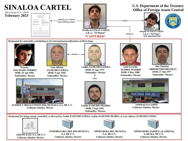 La Oficina de Control de Bienes Extranjeros (OFAC), dependiente del Departamento del Tesoro de Estados Unidos, sancionó a seis ciudadanos mexicanos y miembros del cártel y seis entidades, ya que considera que esta red es “responsable de desviar precursores químicos ilícitos” para facilitar drogas a Estados Unidos.