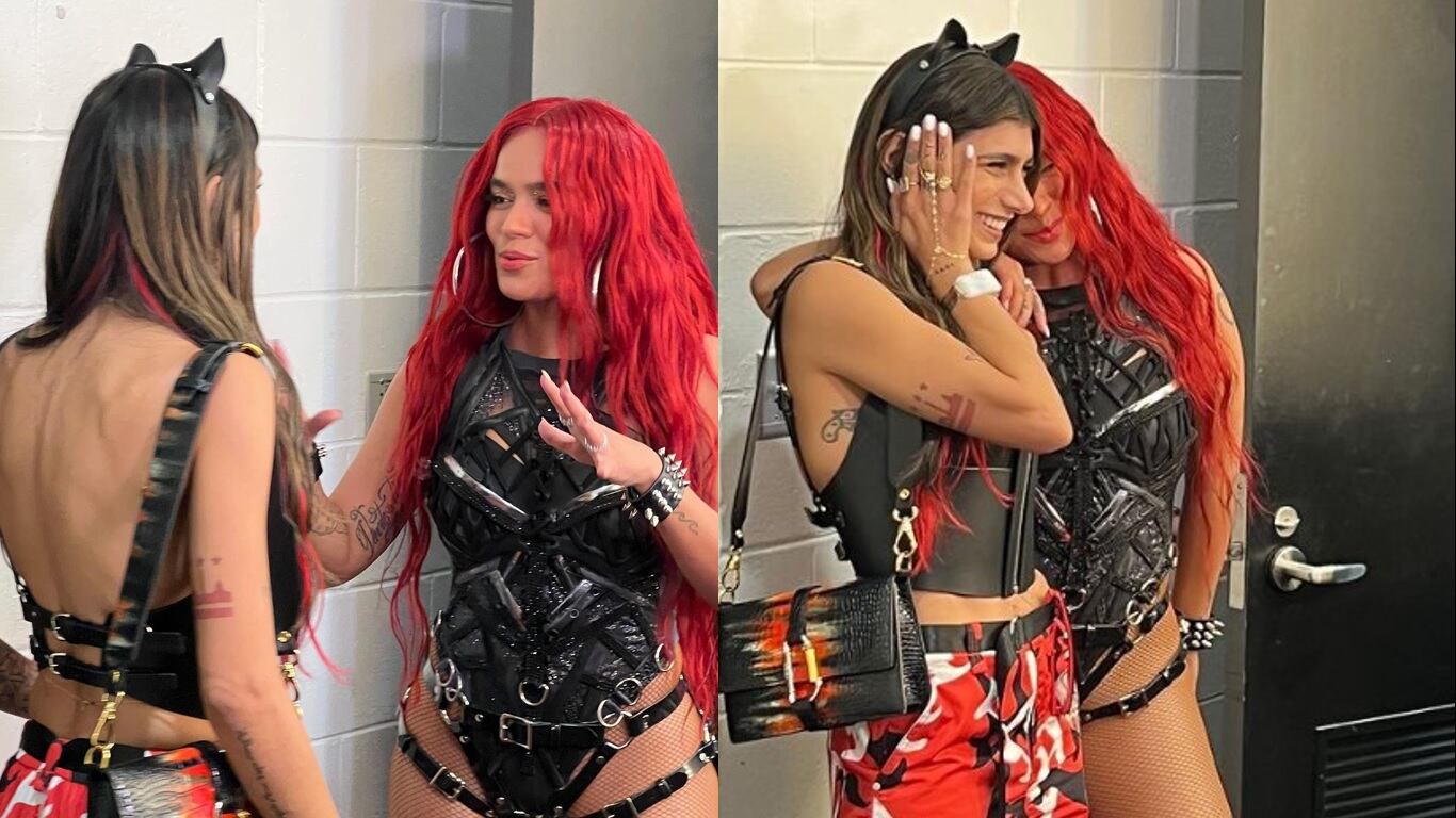 “La Bich..., no chota 🧜🏽 ♀️❤️ 🔥👑 felicidades, Karol G naciste para esto. La presencia escénica, la producción, la BANDA, el concurso, la energía, los bailarines, ¡¡¡¡¡¡¡La Bichota!!!!!!! Jod..., esto fue inolvidable. Gracias 🙏🏽✨”, escribió Mía Khalifa al pie de la publicación en un seriado en el que se evidencia que el abrazo entre ambas se hizo más que inevitable.