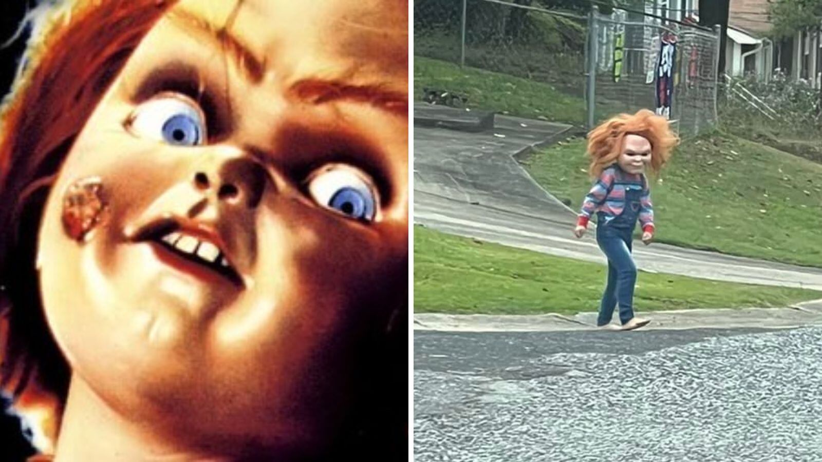 Kendra Walden, una vecina del sector, capturó al “falso Chucky” asechando por el vecindario y compartió el momento en redes sociales.