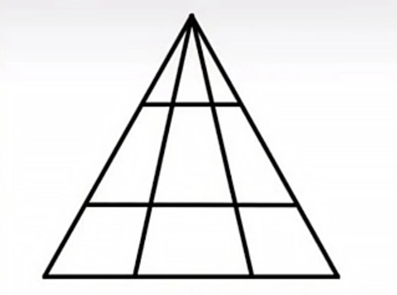 Pero de acuerdo con el portal del diario The Sun, la verdad es que hay un gran total de 18 triángulos contenidos en la críptica imagen. Si tienes dificultades para contarlos todos, trata las líneas de la imagen como una cuadrícula y construye triángulos de diferentes tamaños fila por fila y columna por columna.