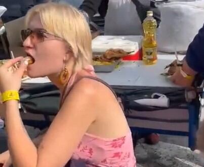 No les importa que la preparación de los alimentos sea al aire libre. Les gusta tanto, que comen alegres en medio del humo de lo que parece ser pescado frito. Se ven ávidos, mientras disfrutan al máximo de los platos típicos del Perú.