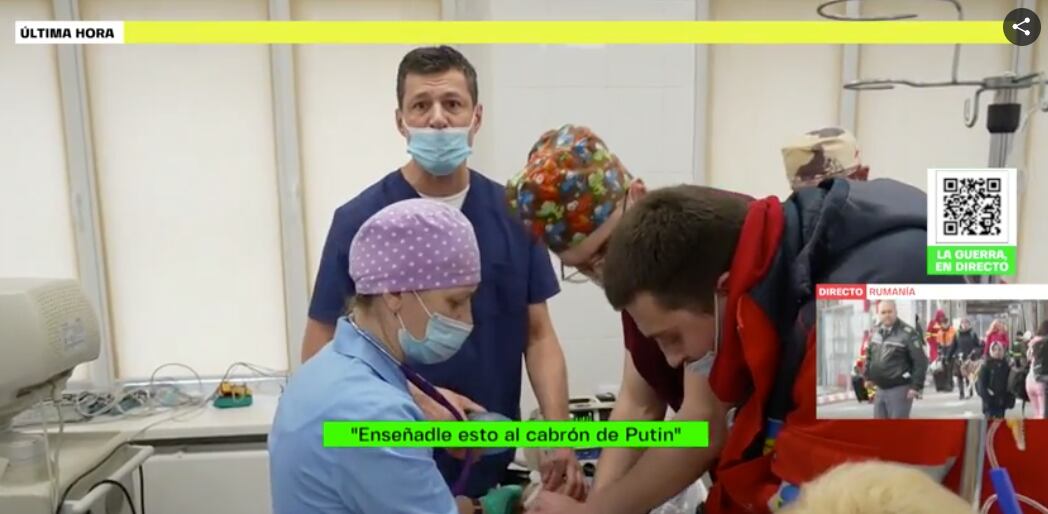 “Muéstrenle esto al cabrón de Putin…Los ojos de esta niña, y médicos llorando”, señala un médico mientras hace lo imposible por salvar a la niña, según da cuenta La Sexta de España..