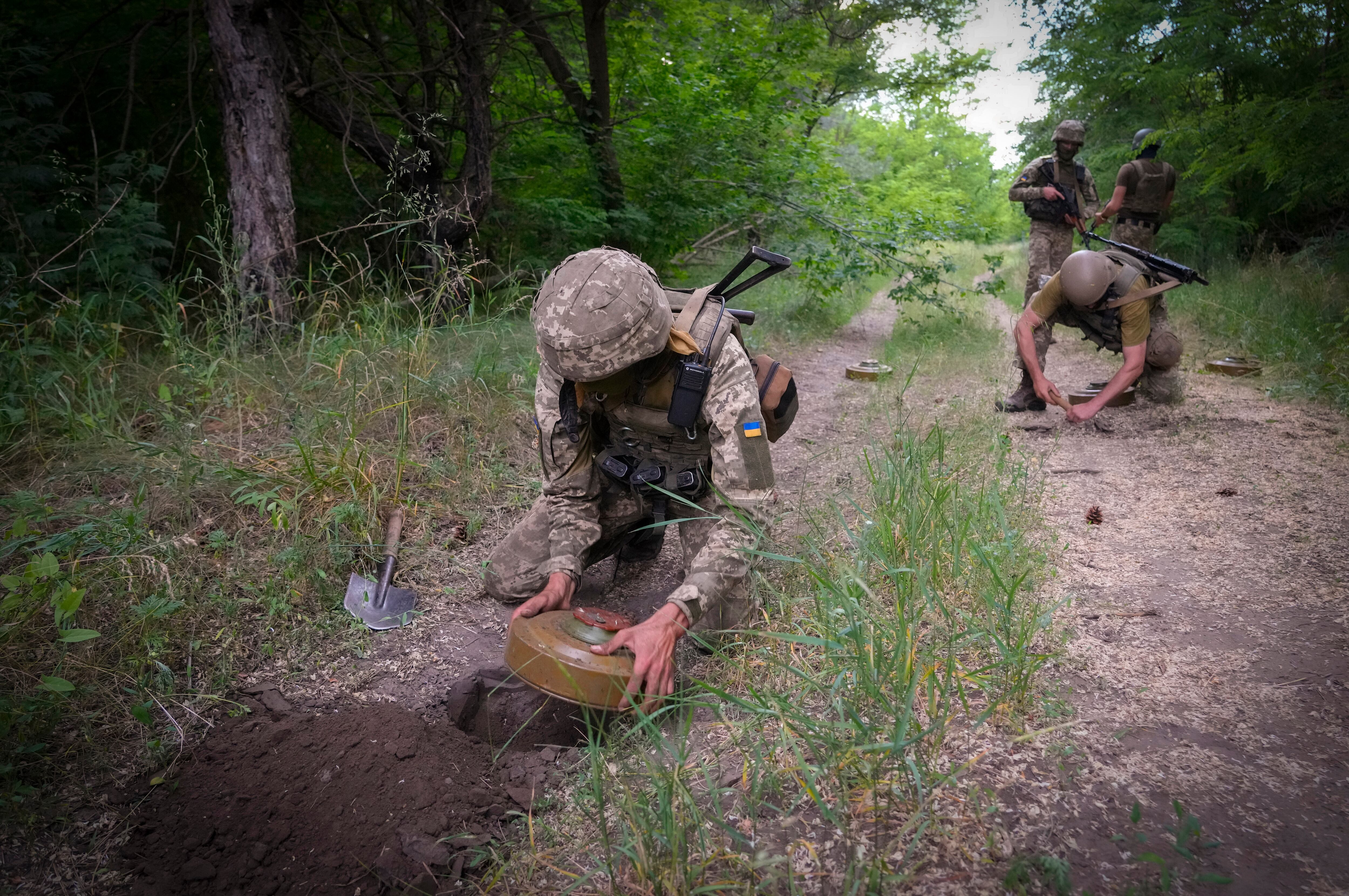 Una unidad ucraniana que enterró minas TM-62 en un bosque al este de la región del Donbás esta semana dijo a la Associated Press que el objetivo era impedir que las fuerzas rusas siguiesen avanzando.