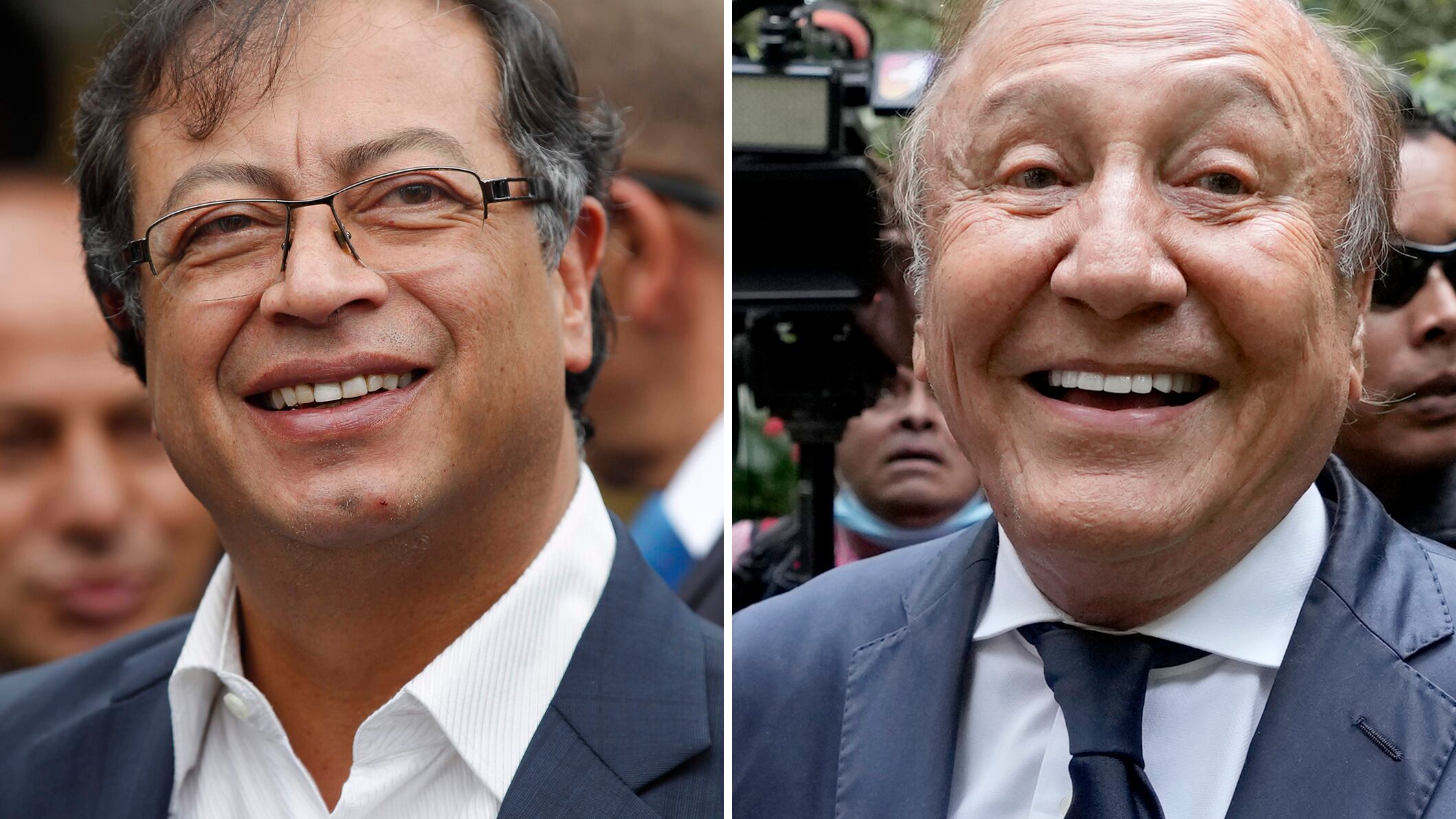 En esta combinación de imágenes de archivo se muestra a los candidatos a la presidencia de Colombia que se medirán en el balotaje: Gustavo Petro (izquierda), el 17 de junio de 2018, y Rodolfo Hernández, el 2 de junio de 2022, en Bogotá, Colombia. La AP (Ricardo Mazalan/AP)