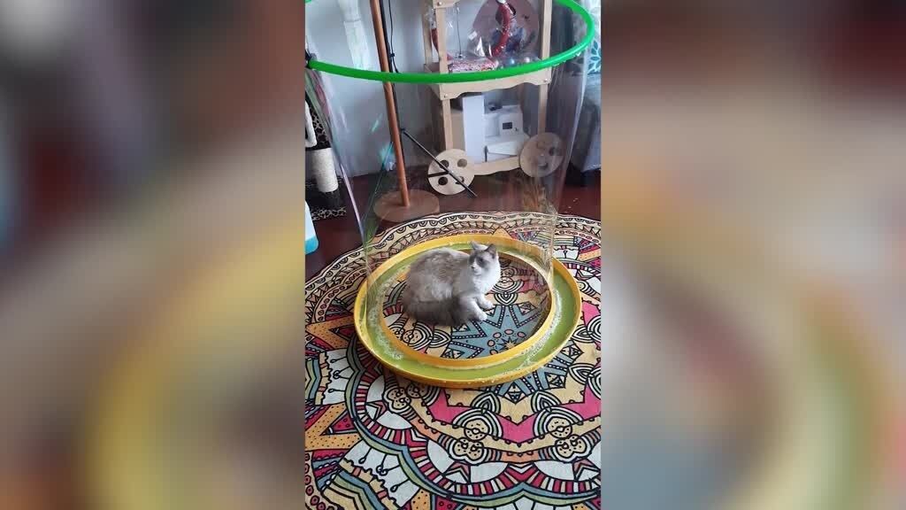 Este gato se quedó boquiabierto cuando quedó encerrado en el interior de una enorme burbuja. Su reacción al movimiento de la burbuja y su sorpresa fueron grabados por su dueña, Sabina Orellana, residente en Lima, Perú.