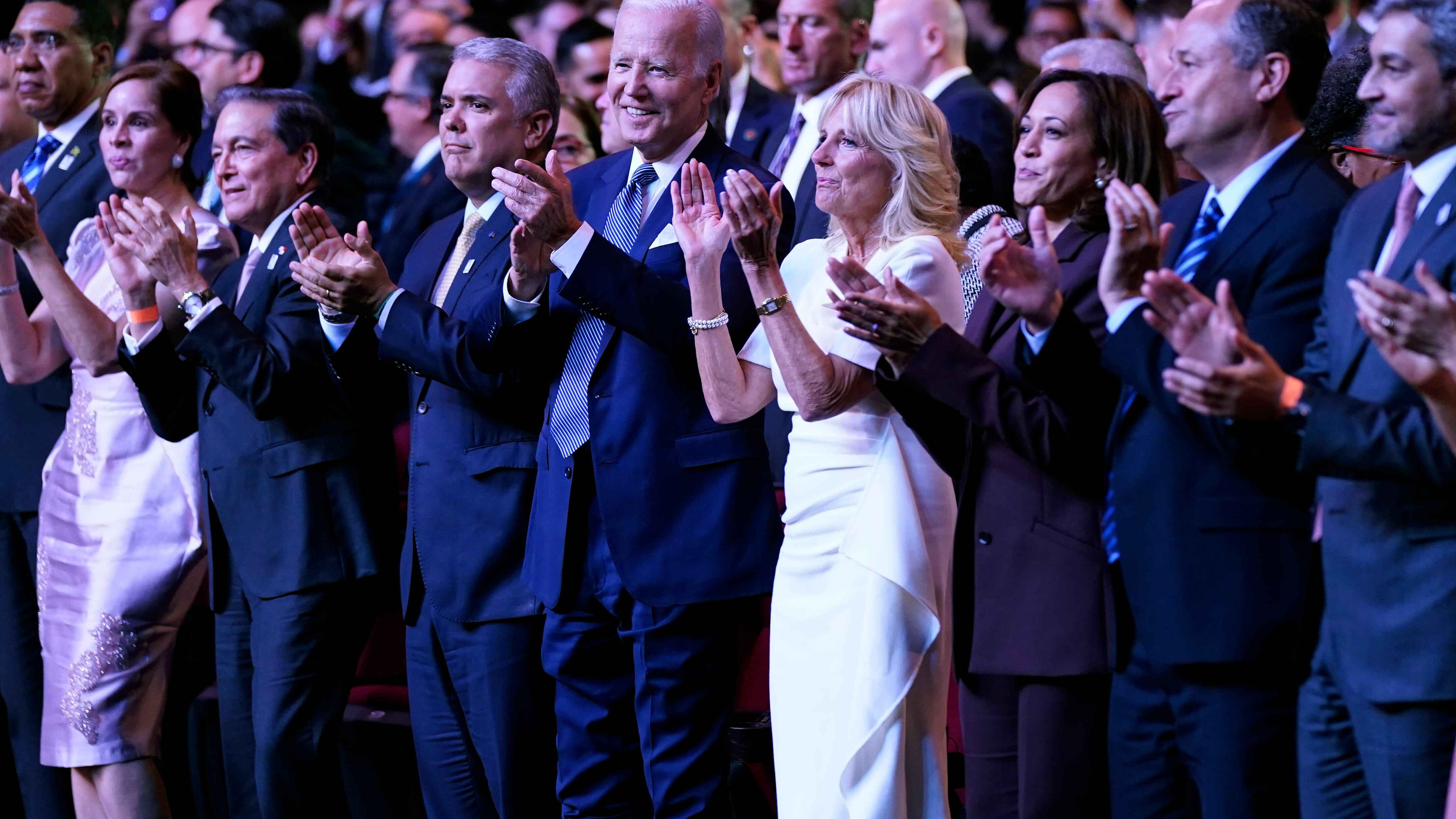 El presidente estadounidense Joe Biden aplaude junto a varios mandatarios durante la ceremonia de inauguración de la Cumbre de las Américas, el miércoles 8 de junio de 2022, en Los Ángeles. (AP Foto/Evan Vucci) AP (Evan Vucci/AP)