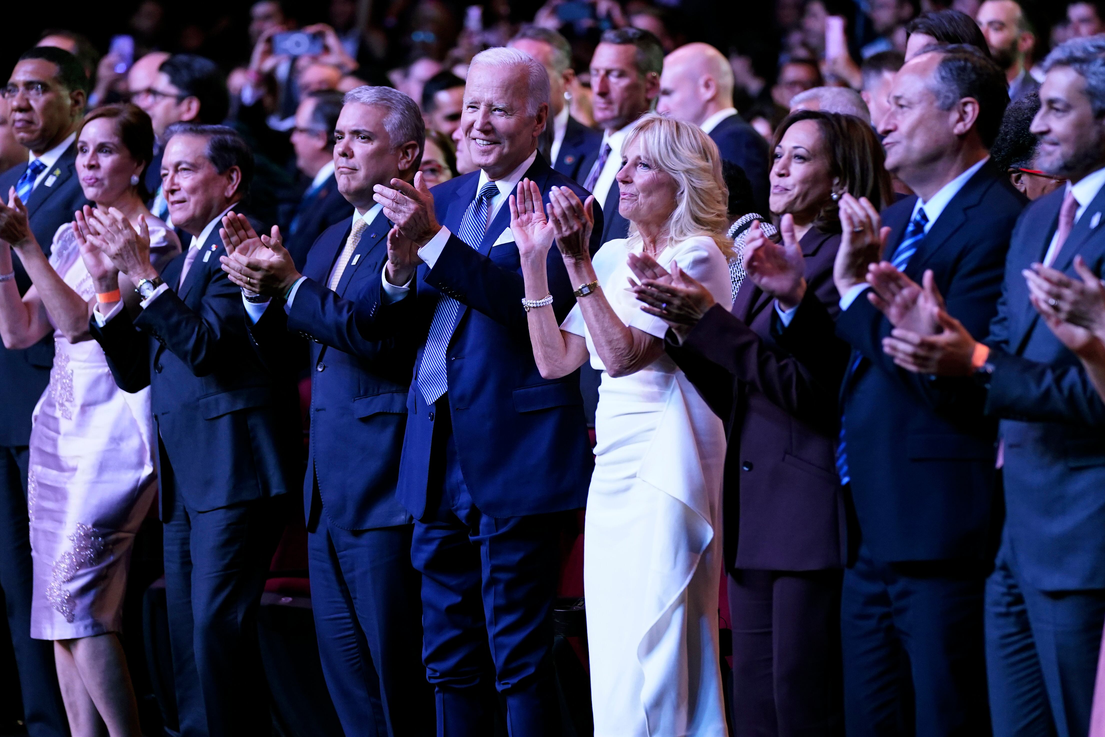 El presidente estadounidense Joe Biden aplaude junto a varios mandatarios durante la ceremonia de inauguración de la Cumbre de las Américas, el miércoles 8 de junio de 2022, en Los Ángeles. (AP Foto/Evan Vucci) AP (Evan Vucci/AP)