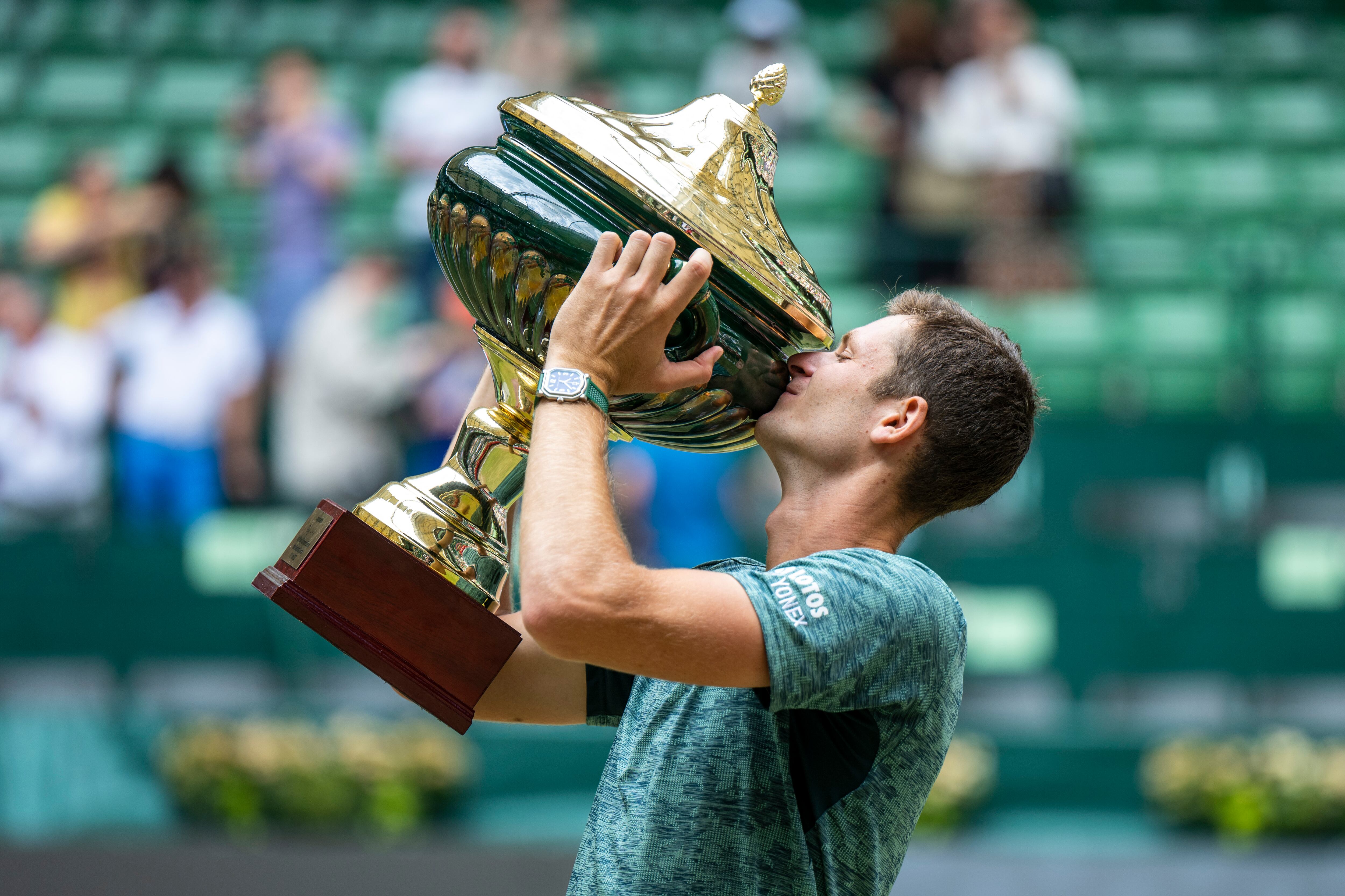 HALLE, Alemania (AP) — Hubert Hurkacz derrotó el número uno mundial Daniil Medvedev en la final del Abierto de Halle el domingo y robusteció sus credenciales como candidato a Wimbledon.