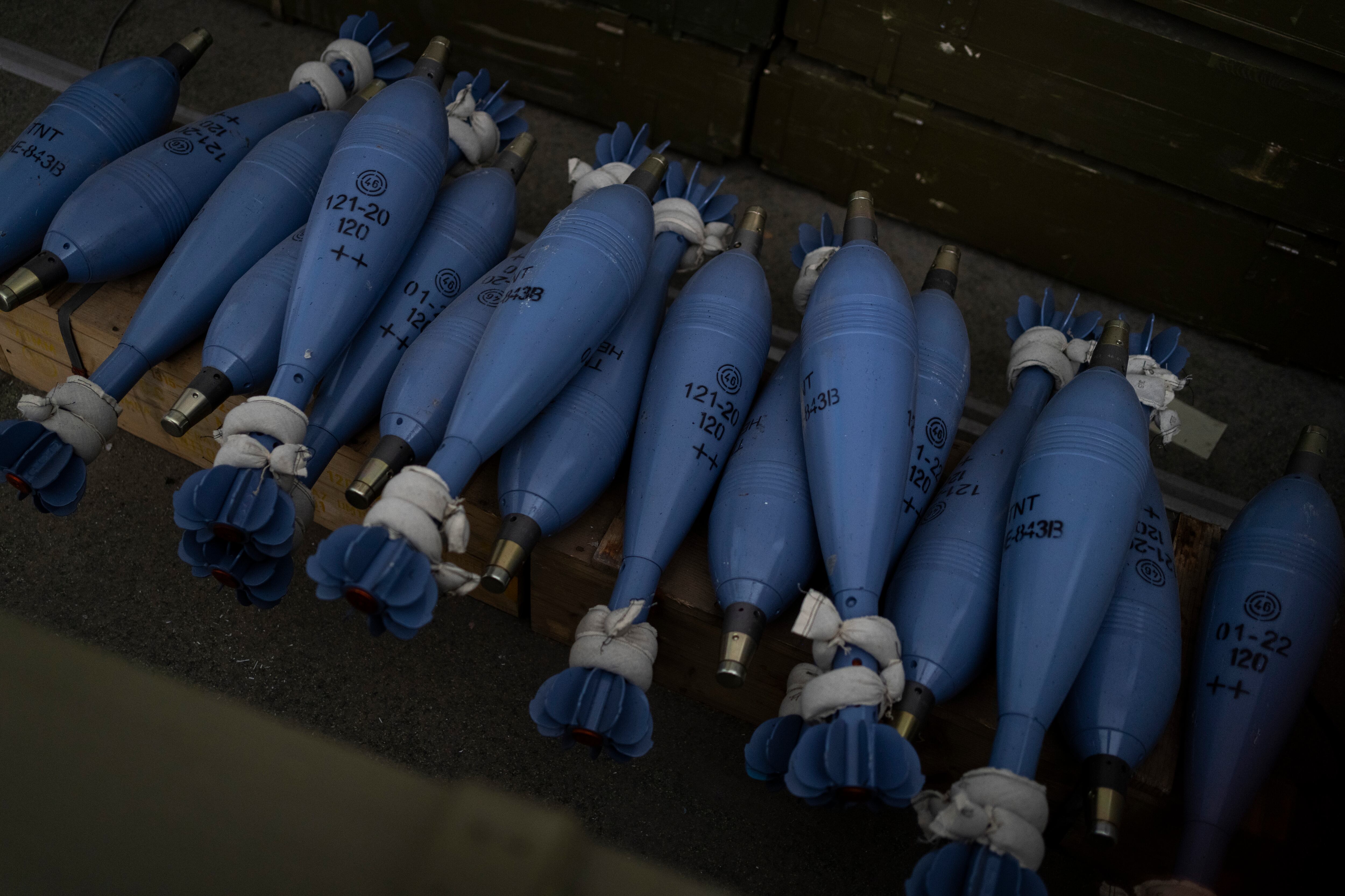En el puesto de avanzada del este de Ucrania se apilan docenas y docenas de proyectiles de mortero, pero el comandante de las tropas, Mykhailo Strebizh, conocido con el nombre de guerra de Gaiduk, lamentó que si sus combatientes se vieran sometidos a un intenso cañoneo de artillería, su reserva sólo alcanzaría para devolver el fuego por unas cuatro horas, en el mejor de los casos.