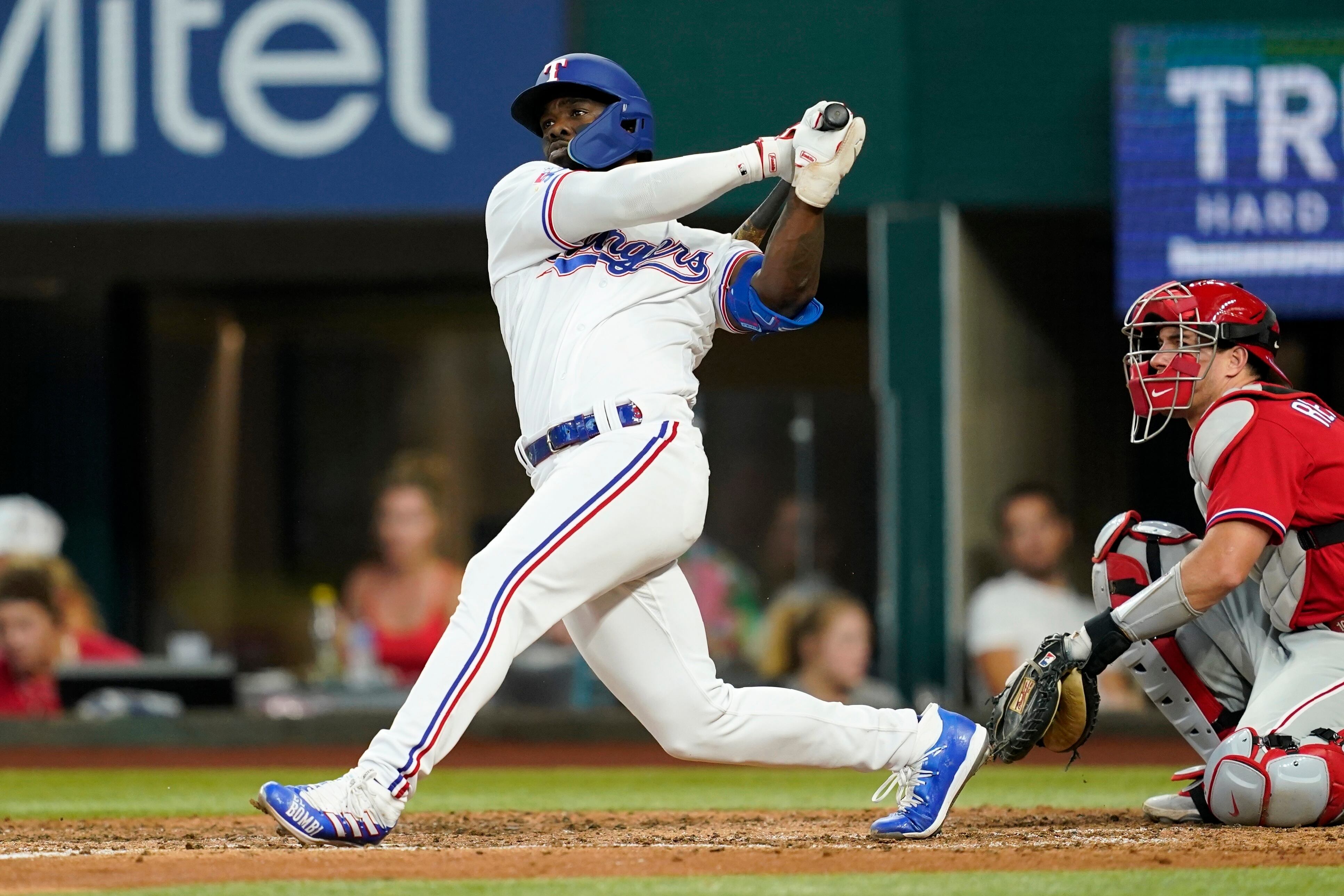 ARLINGTON, Texas, EE.UU. (AP) — Brad Miller bateó un sencillo de dos carreras ante su equipo anterior, y los Rangers de Texas vencieron por novena ocasión consecutiva a los Filis de Filadelfia, al imponerse el miércoles por 4-2.