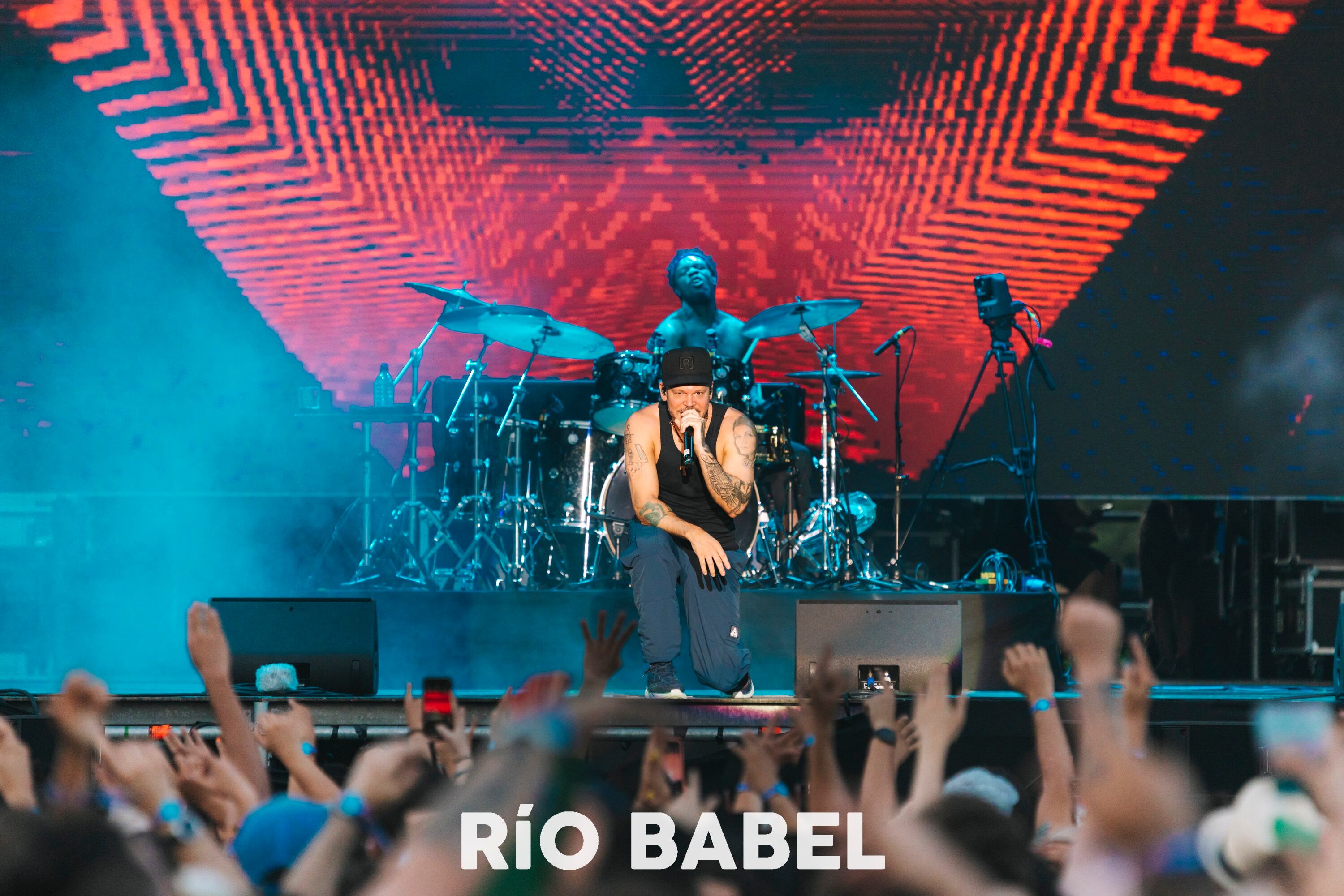 Tras ello, continúo con 'Fiesta de locos', 'Muerte en Hawaii' o 'La vuelta al mundo'. Con sus rimas, Pérez sabe llevar al público del baile a la reivindicación, y a la emoción, como hizo también con 'Latinoamérica' y 'This is not America', temas con los que narra la historia y denuncia las miserias de América Latina, región muy presente en el Río Babel como se podía notar por la multitud de banderas de sus países.