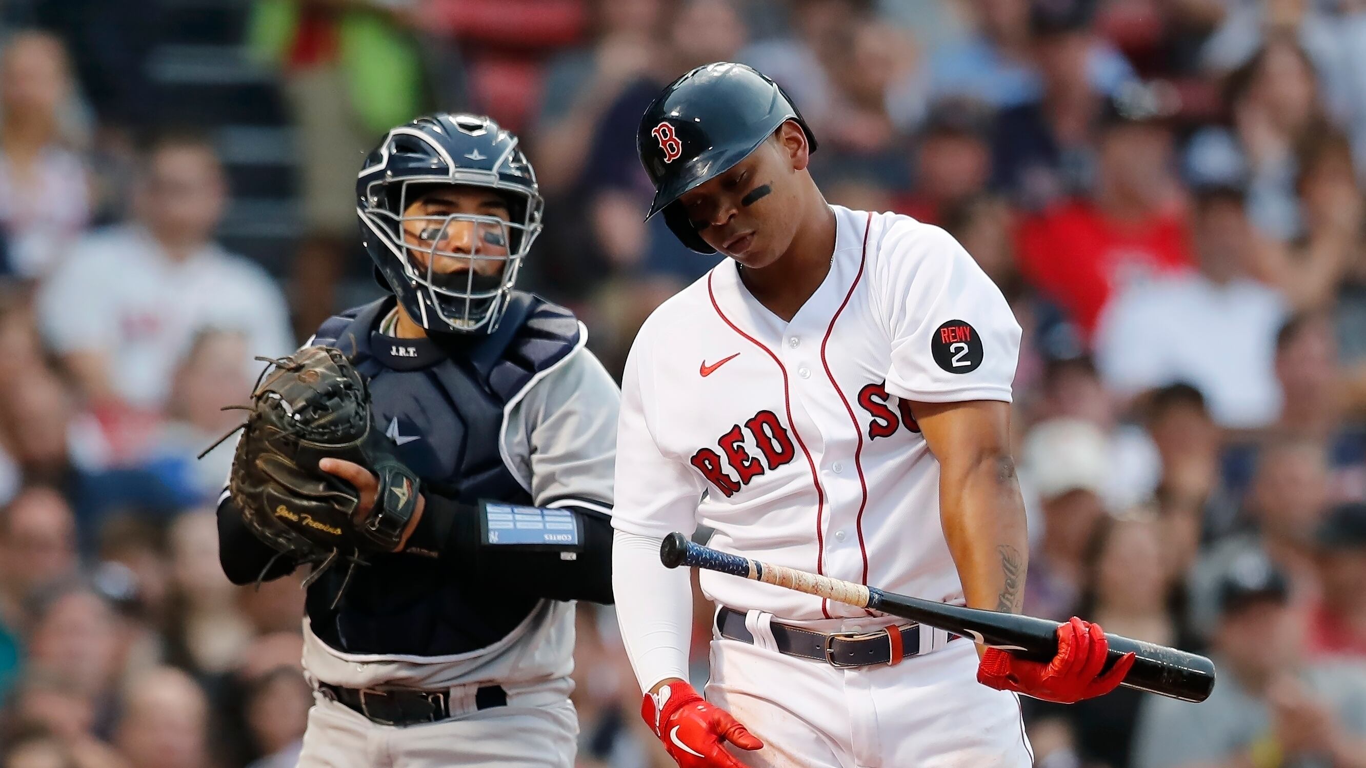 Horas después se lesionó la espalda al impactarse contra un barandal mientras perseguía una bola de foul en el Fenway Park. En su próximo turno al bate se vio un poco incómodo al batear y abandonó el juego.
