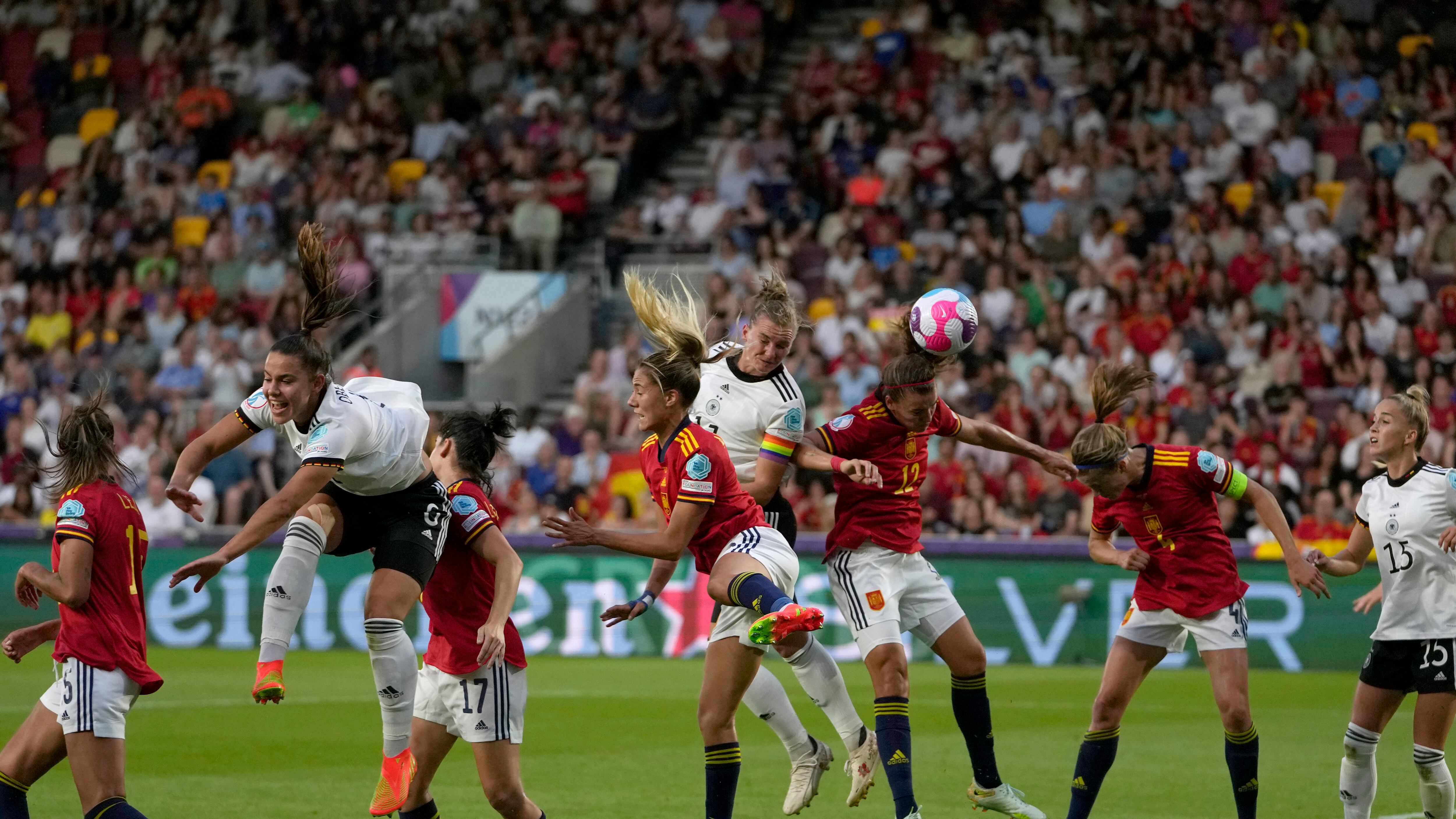 Alemania puso fin a la racha de 24 partidos sin perder de España para avanzar a los cuartos de final de la Eurocopa Femenina con la victoria 2-0 el martes.
