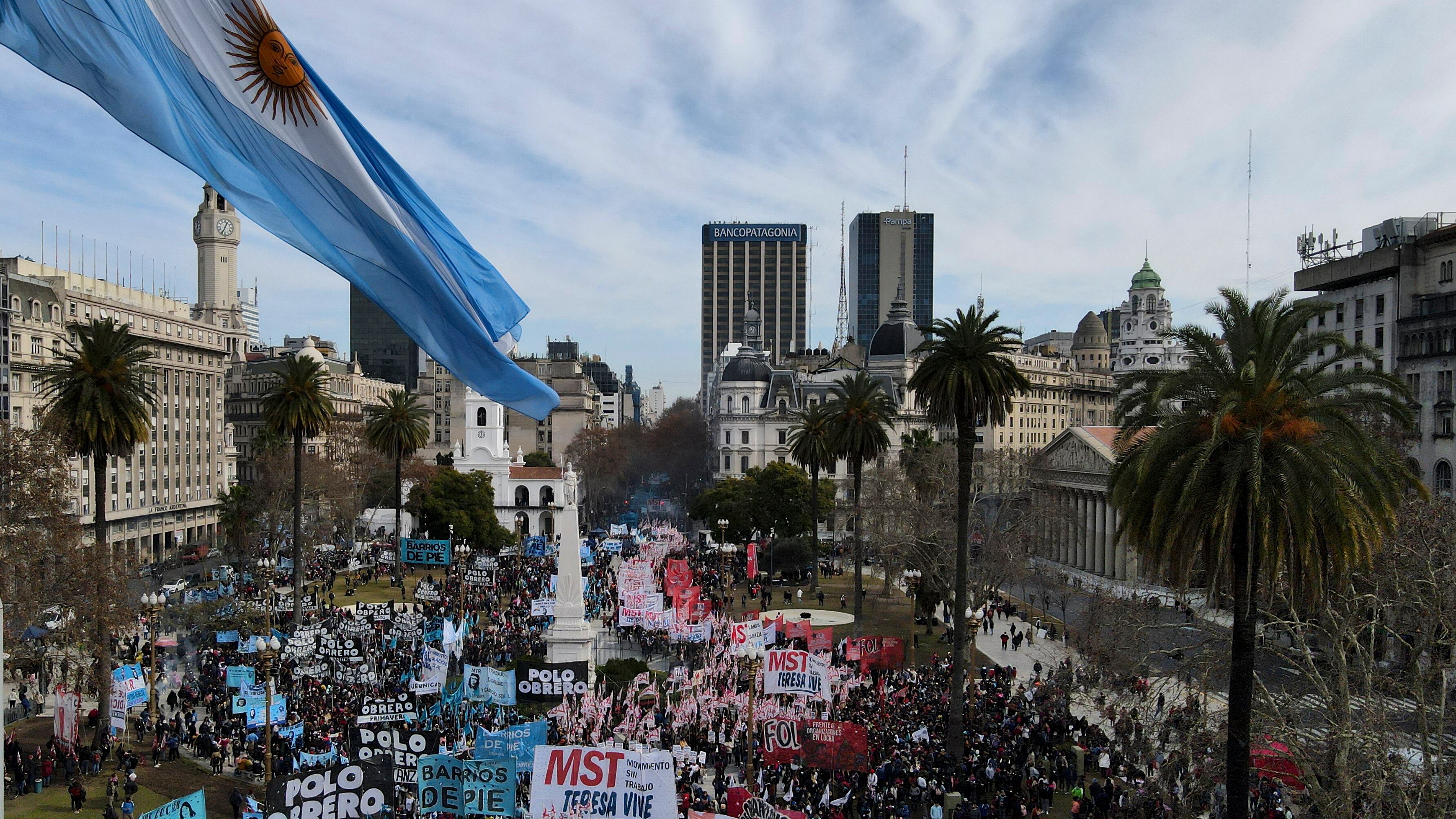 Varias agrupaciones cortaron distintos puntos de Buenos Aires para luego marchar por las principales avenidas en largas columnas hacia la Plaza de Mayo, donde se encuentra la casa de gobierno. Allí tienen previsto quedarse varias horas para plantear sus demandas.