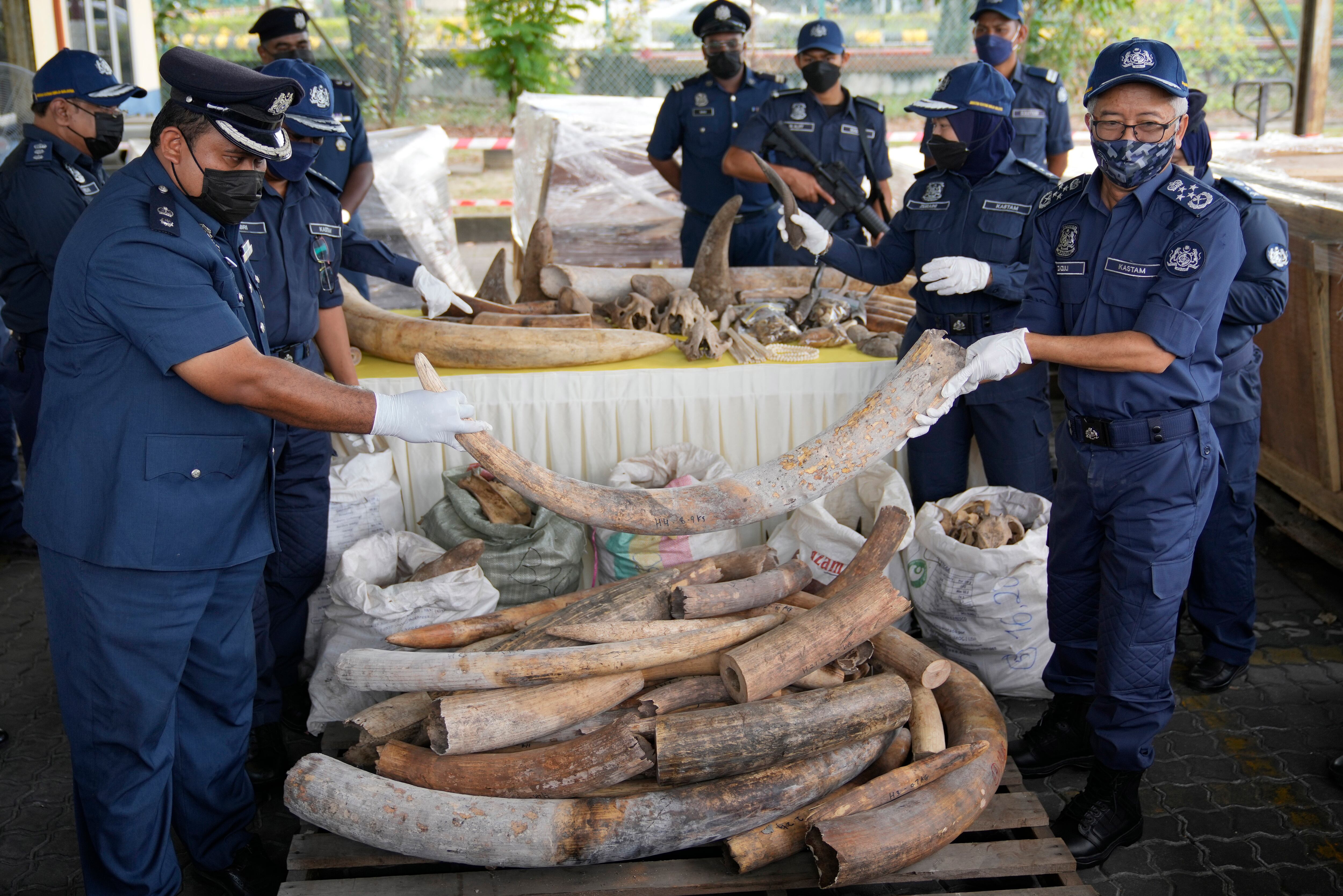 PORT KLANG, Malasia (AP) — Las autoridades de Malasia confiscaron un contenedor lleno de colmillos de elefantes africanos, escamas de pangolín y cráneos y huesos de otros animales, que se estimaba valían unos 80 millones de ringgits (18 millones de dólares), según anunciaron el lunes.