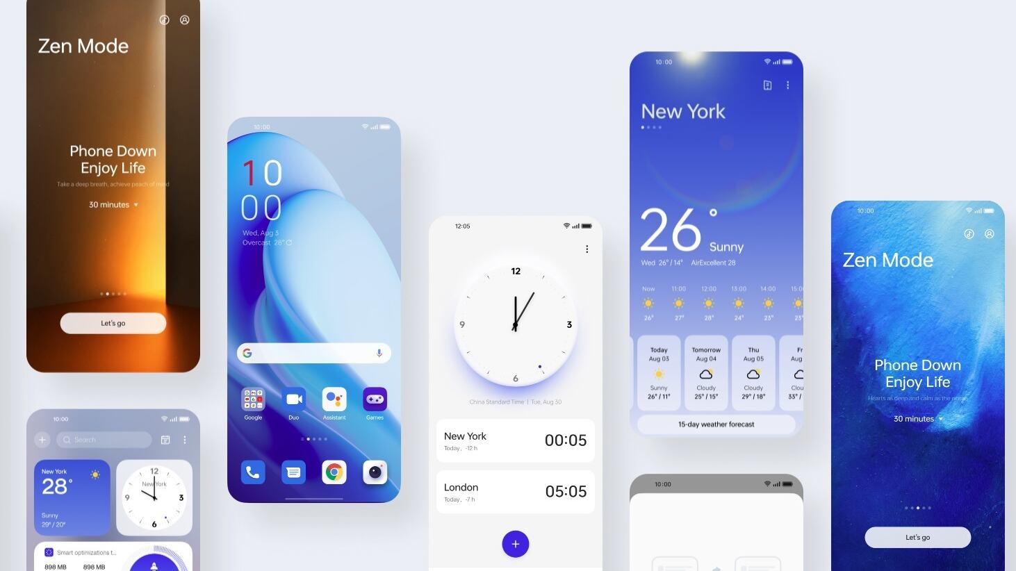 OxygenOS 13 presenta una estética basada en la naturaleza y denominada Aquamorphic, inspirada en un diseño relajante y minimalista, que destaca por sus bordes más suaves y redondeados. Además, sus colores cambian para adaptarse a la hora del día en que se utilice el dispositivo y los 'widgets' prometen ser más accesibles a través de una pulsación larga.