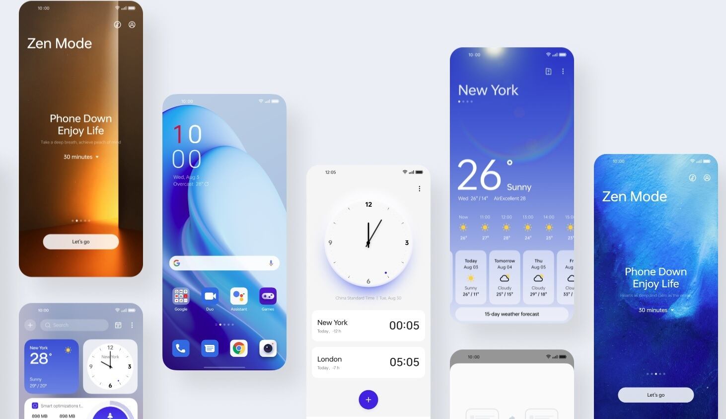 OxygenOS 13 presenta una estética basada en la naturaleza y denominada Aquamorphic, inspirada en un diseño relajante y minimalista, que destaca por sus bordes más suaves y redondeados. Además, sus colores cambian para adaptarse a la hora del día en que se utilice el dispositivo y los 'widgets' prometen ser más accesibles a través de una pulsación larga.