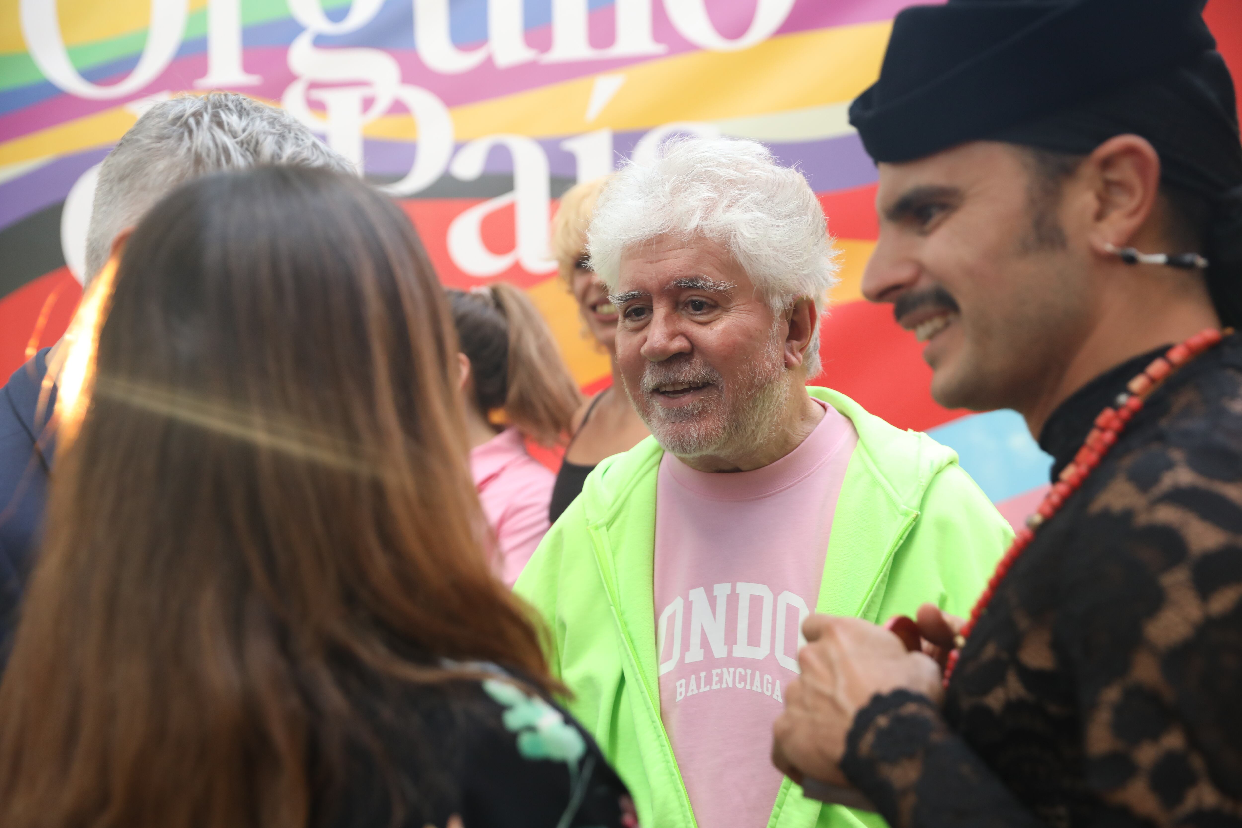 Archivo - El director de cine Pedro Almodóvar (c) y el compositor Rodrigo Cuevas (1d) conversan durante la II edición de los Reconocimientos Arcoíris por el Día Internacional del Orgullo LGTBI, a 27 de junio de 2022, en Madrid (España). Isabel Infantes - Europa Press - Archivo (ISABEL INFANTES/Europa Press)