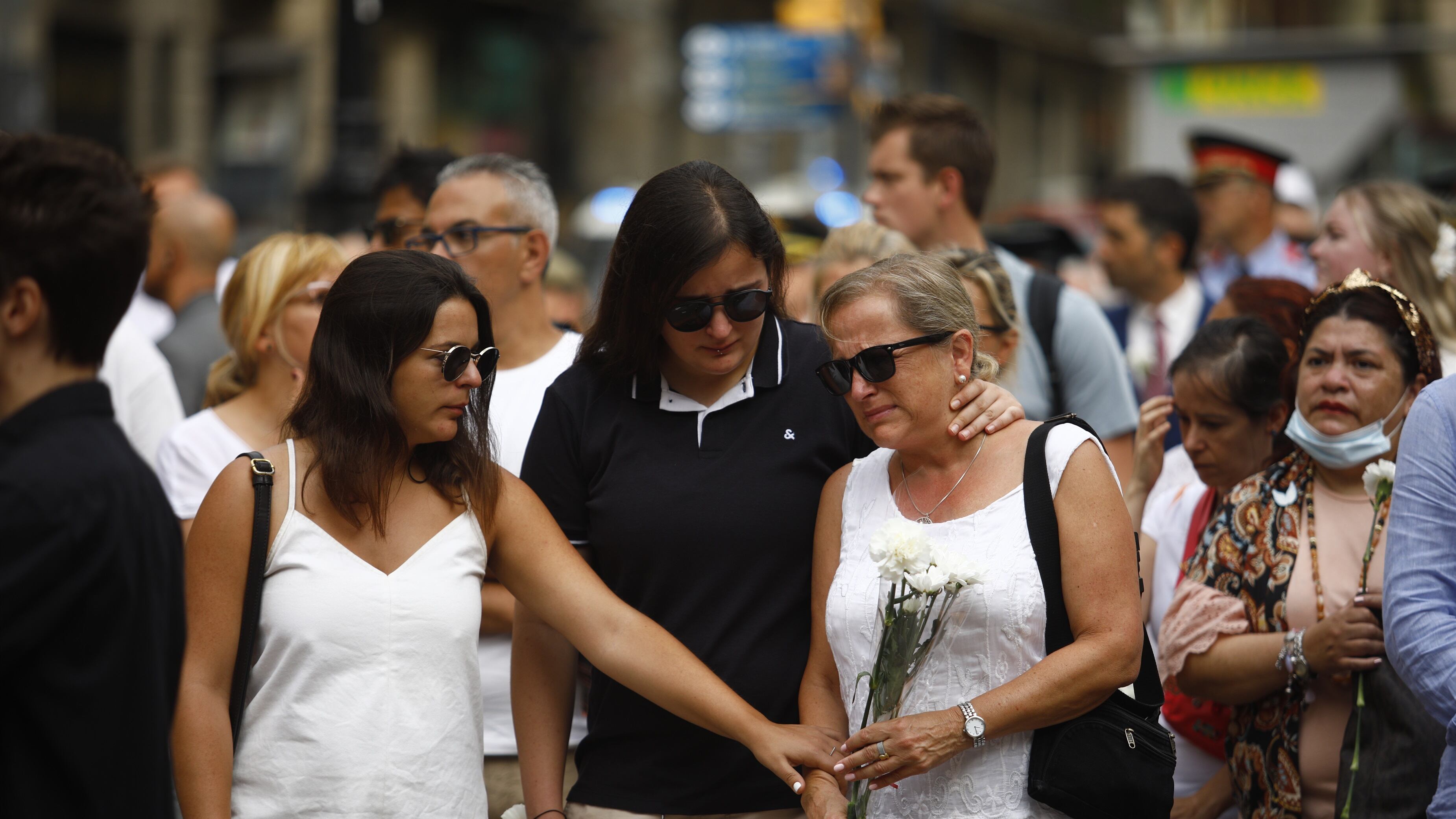 El acto ha finalizado con un minuto de silencio acompañado de la música del 'Cant dels Ocells' y una ofrenda floral, y ha dado protagonismo a las víctimas y familiares, que han sido los primeros en depositar claveles blancos sobre el Pla de l'Os, donde el 17 de agosto se detuvo la furgoneta tras el atropello masivo.