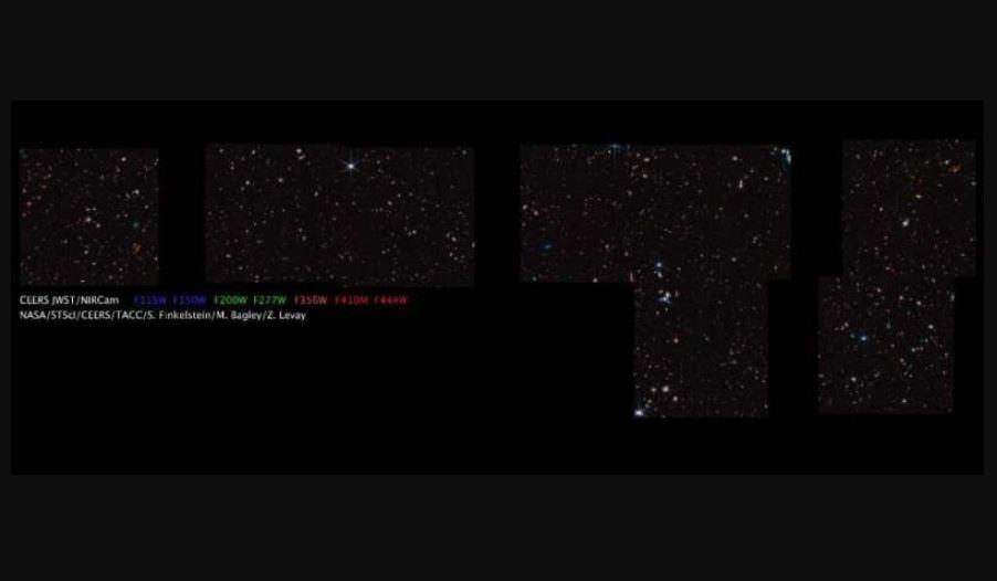 Los científicos, de la colaboración Cosmic Evolution Early Release Science Survey (CEERS), dijeron que el mosaico es de un trozo de cielo cerca de la 'cola' de la Osa Mayor. Las imágenes se tomaron como parte de las primeras observaciones del equipo CEERS, que está trabajando para demostrar que JWST se puede usar de manera eficiente para realizar estudios extragalácticos, incluso mientras el telescopio realiza otras observaciones.