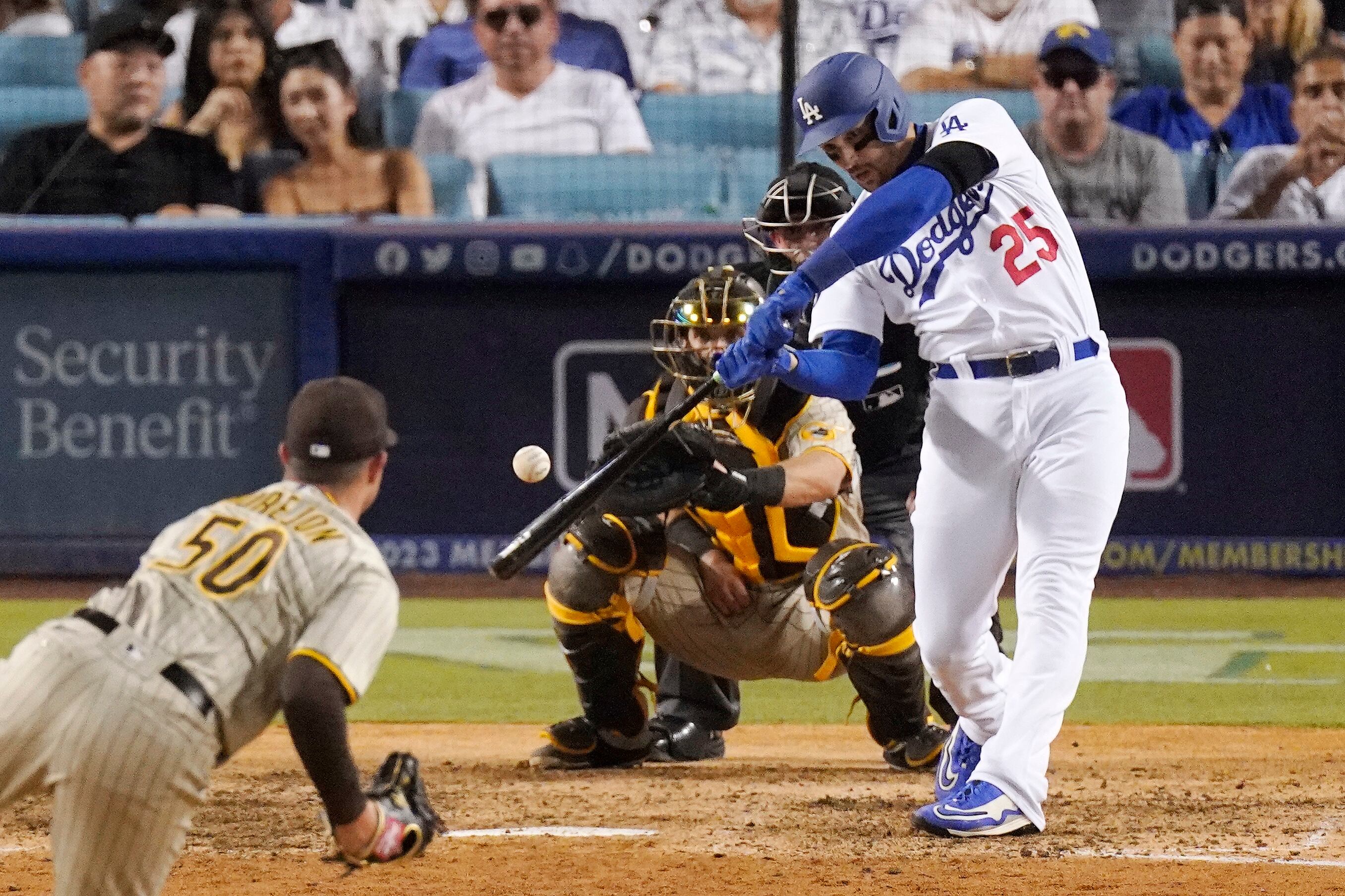 Los Dodgers rompieron el empate con un cuarto inning de cinco carreras, antes de que los Padres recortaran distancias y se pusieran a una en el séptimo.