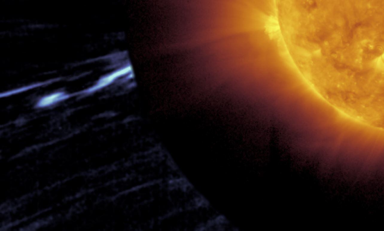El 25 de marzo de 2022, Solar Orbiter estaba a solo un día de un paso cercano del Sol, colocándolo dentro de la órbita del planeta Mercurio, y su instrumento Metis estaba tomando datos. Metis bloquea el resplandor brillante de la luz de la superficie del Sol y toma fotografías de la atmósfera exterior del Sol, conocida como corona. Las partículas en la corona están cargadas eléctricamente y siguen las líneas del campo magnético del Sol hacia el espacio. Las partículas cargadas eléctricamente se llaman plasma.