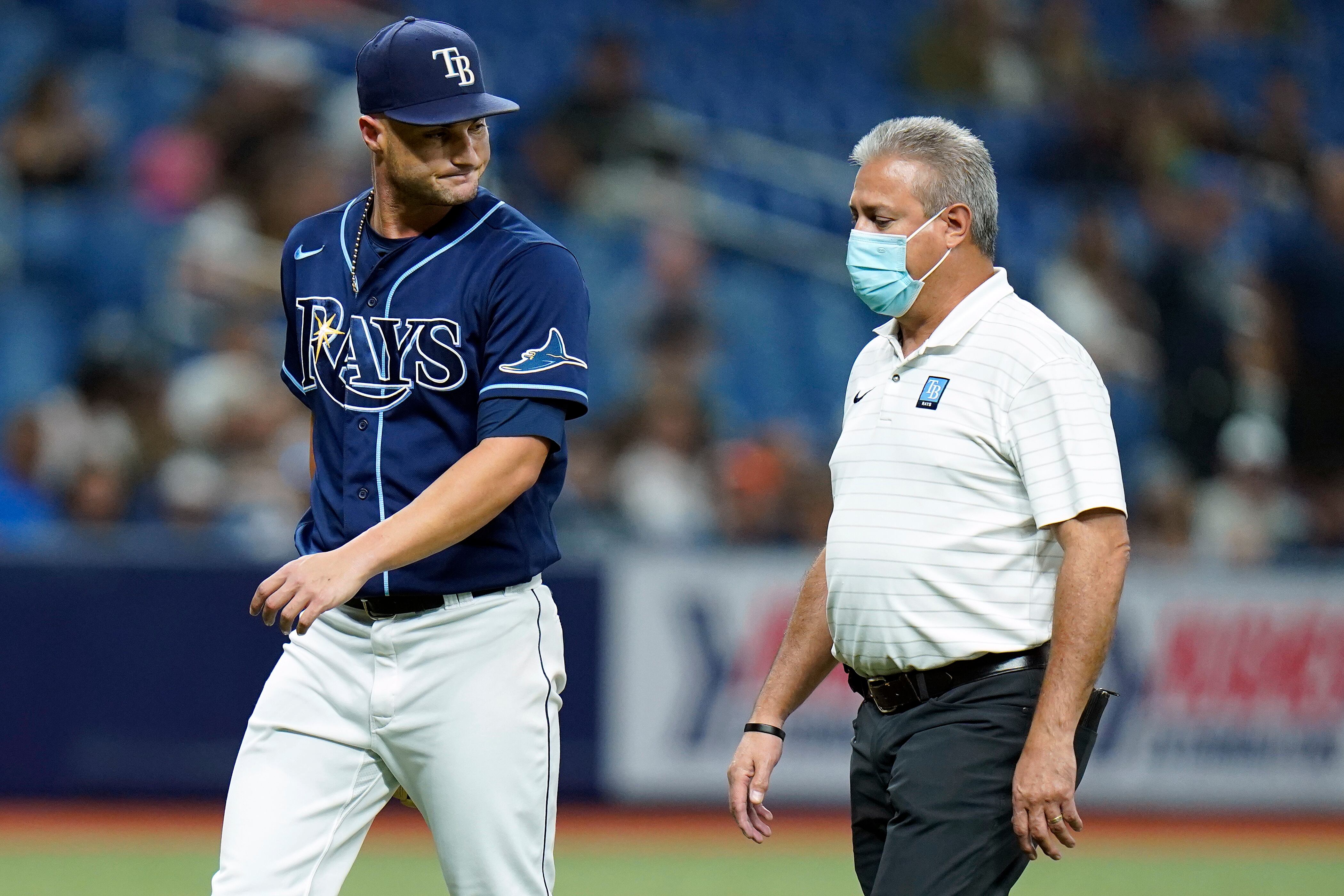 Entregó un boleto al venezolano José Altuve en el inicio del quinto episodio, antes de lanzar tres bolas seguidas al dominicano Jeremy Peña. El manager Kevin Cash y un kinesiólogo llegaron desde la cueva y retiraron al lanzador de 25 años, pese a que pareció decir: “Estoy bien”.
