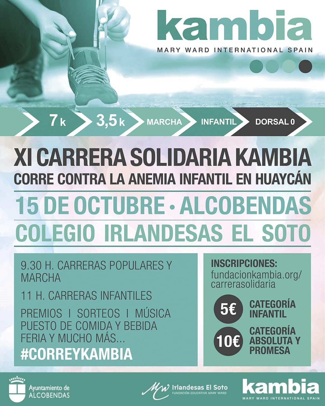 La carrera saldrá a las 9:30 horas del Colegio Irlandesas El Soto (Alcobendas) con dos distancias a elegir: 3,5 ó 7 kilómetros. Asimismo, habrá una opción de marcha solidaria, para quien prefiera realizar el recorrido caminando.