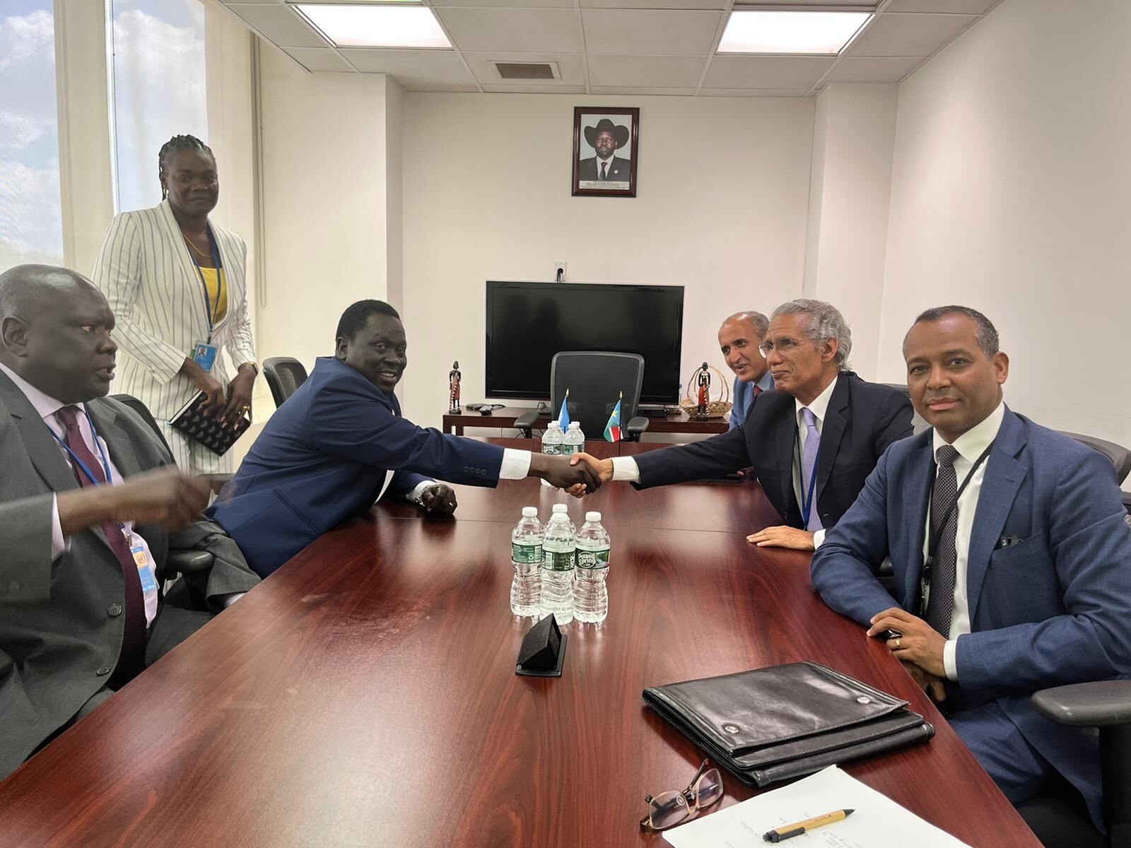 Las autoridades de Sudán del Sur y de la RASD acordaron el martes, "en consonancia con los principios y objetivos de la Unión Africana", el restablecimiento de las relaciones diplomáticas "al más alto nivel" en un encuentro al margen de la Asamblea General de la ONU en Nueva York, que reunió al vicepresidente sursudanés, Husain Abdelbaki Akun, y al responsable de la RASD, Mohamed Salem Salek.