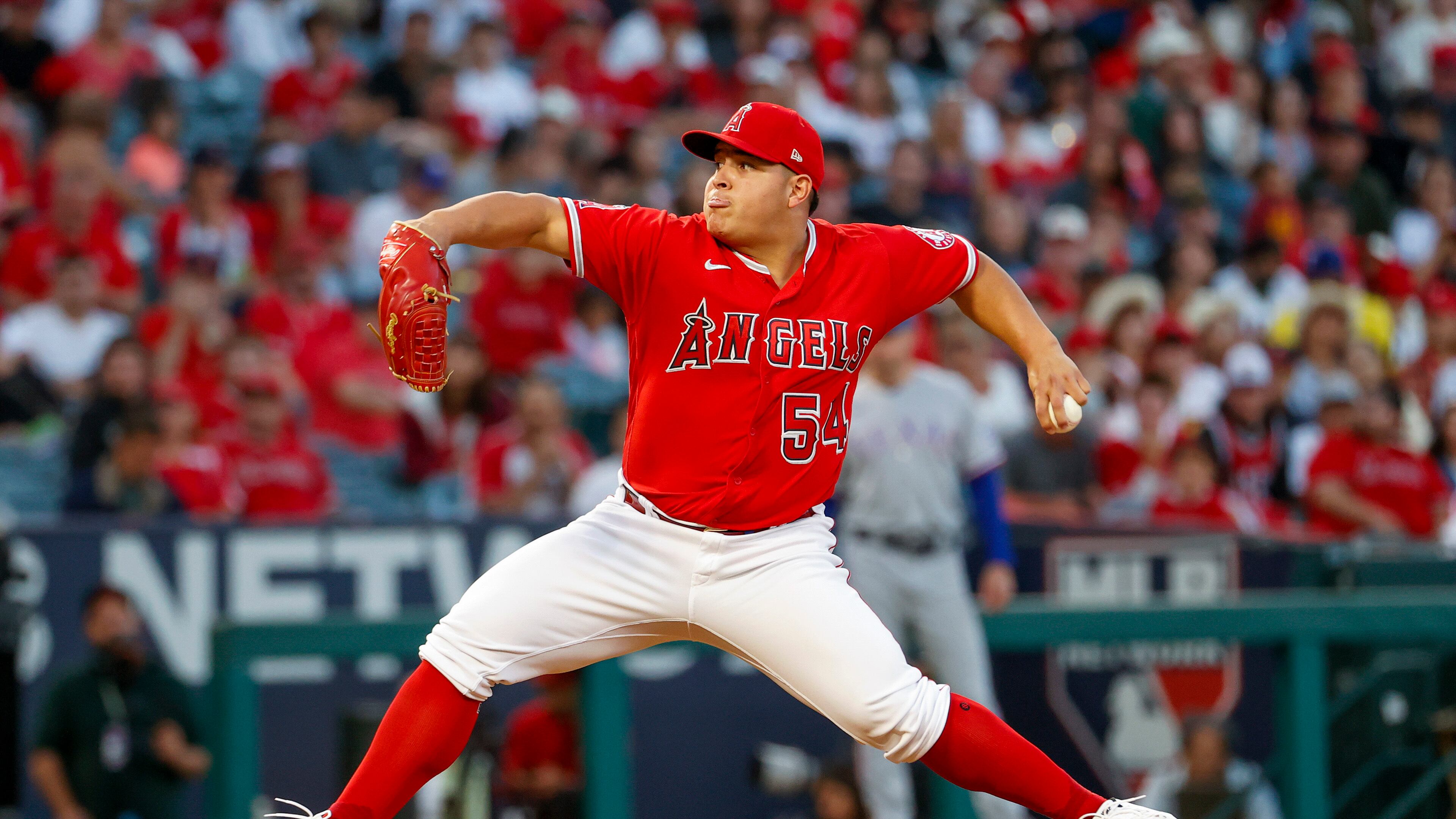 El abridor venezolano José Suárez, de los Angelinos de Los Ángeles, hace un lanzamiento en el juego ante los Rangers de Texas, el sábado 1 de octubre de 2022 (AP Foto/Ringo H.W. Chiu) AP (Ringo H.W. Chiu/AP)