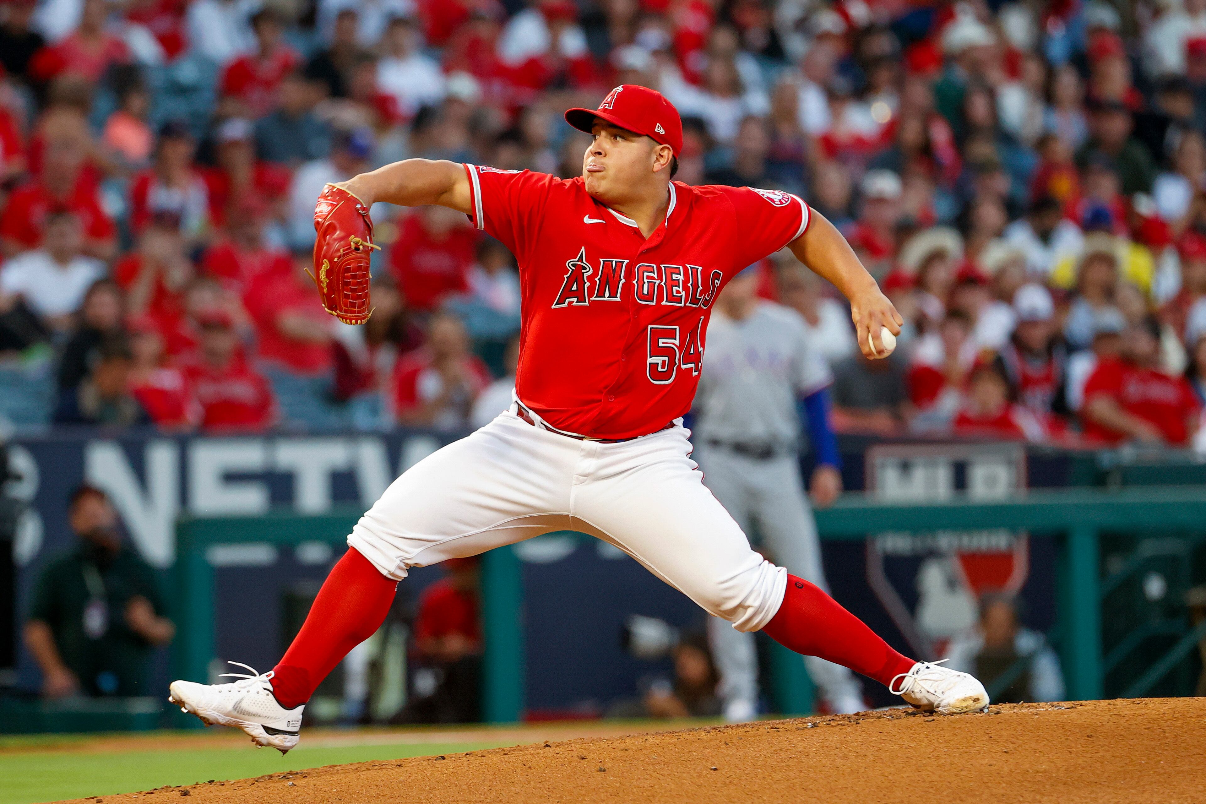 El abridor venezolano José Suárez, de los Angelinos de Los Ángeles, hace un lanzamiento en el juego ante los Rangers de Texas, el sábado 1 de octubre de 2022 (AP Foto/Ringo H.W. Chiu) AP (Ringo H.W. Chiu/AP)
