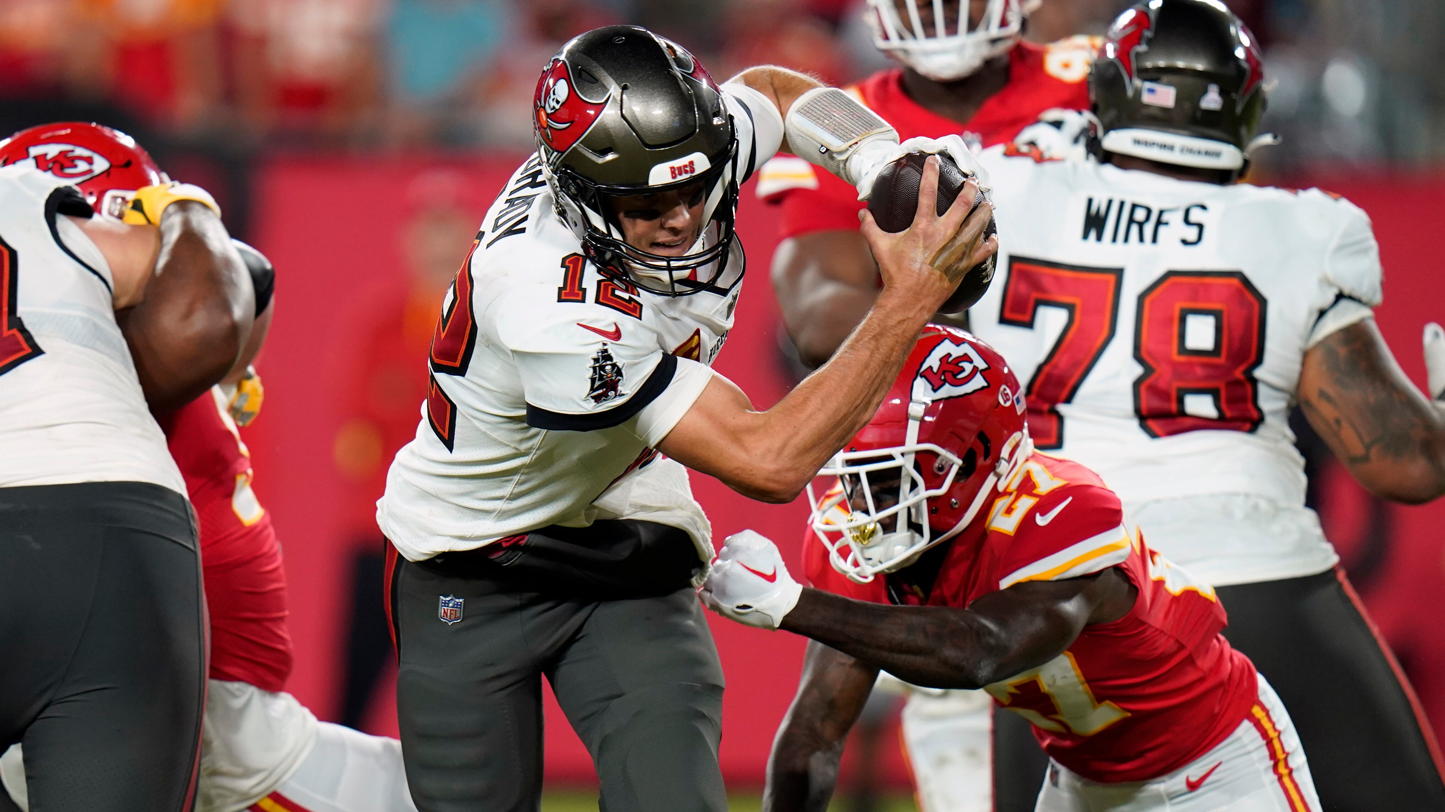 Brady fue capturado al final de la primera mitad y perdió el balón que llevó a un touchdown de los Chiefs. El quarterback de 45 años siguió jugando y terminó completando 39 de 52 pases para 385 yardas, tres touchdowns y ninguna intercepción.