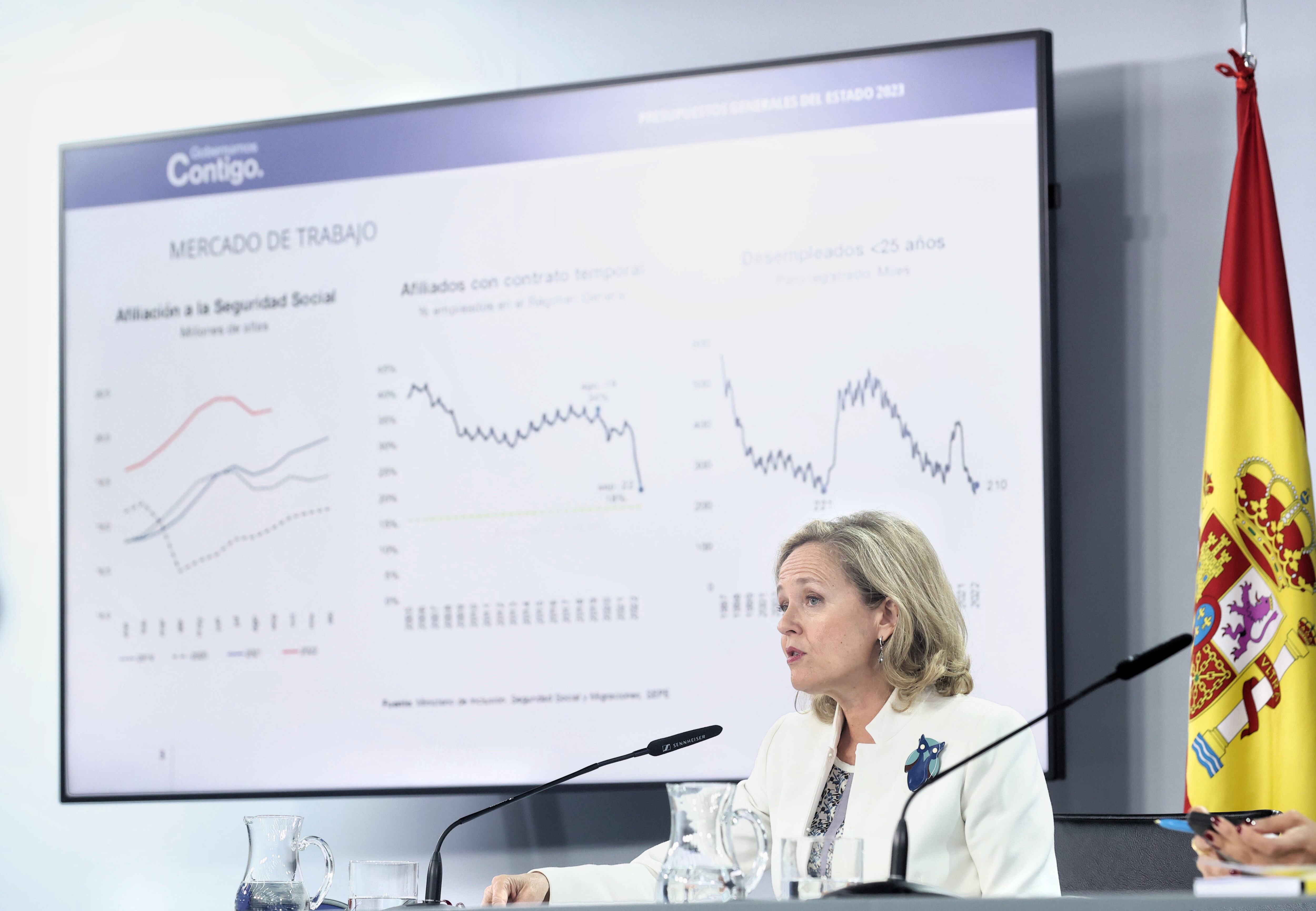 Así, al ser preguntada por si se siente "desautorizada" por el hecho de que el Banco de España estime un crecimiento para 2023 siete décimas menor al previsto por el Ejecutivo, la vicepresidenta ha respondido que "en absoluto".