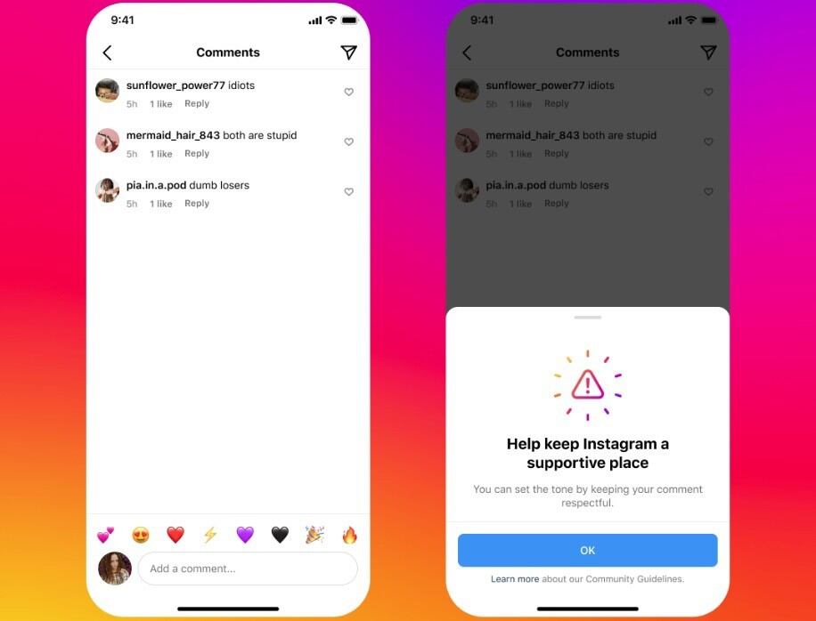 Instagram también ha incorporado una notificación para las personas que vayan a responder a un comentario potencialmente ofensivo con el objetivo de que recapaciten, que ya está disponible para los usuarios que usen inglés, portugués, español, francés, chino o árabe.