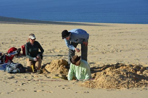 Utilizando muestras de sedimentos procedentes de núcleos manuales y de acantilados de la playa, Rittenour, directora del Laboratorio de Luminiscencia de la USU, utilizó la datación por luminiscencia estimulada ópticamente para acotar el momento de la formación de las extensas dunas de arena de colores brillantes de la isla, así como las de la masa de arena adyacente de Cooloola.