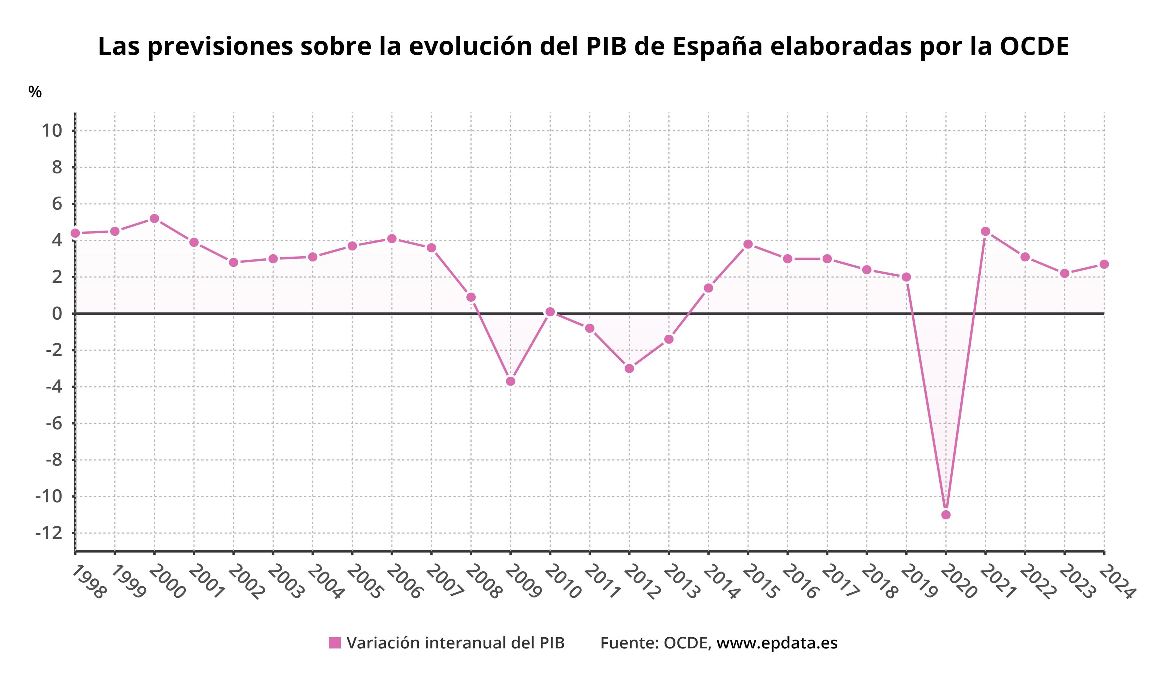 La previsión para 2022 de la OCDE es superior a la que manejan tanto el Gobierno como el resto de grandes instituciones. Así, frente al 4,7% que estima la OCDE se sitúa la previsión del 4,4% del Gobierno, del 4,5% de Banco de España y la Comisión Europea y del 4,3% del Fondo Monetario Internacional (FMI). Para 2023, en cambio, la previsión de la OCDE es superior a la de Bruselas (1%) y el FMI (1,2%), pero inferior a la de Banco de España (1,4%) y el Gobierno (2,1%).