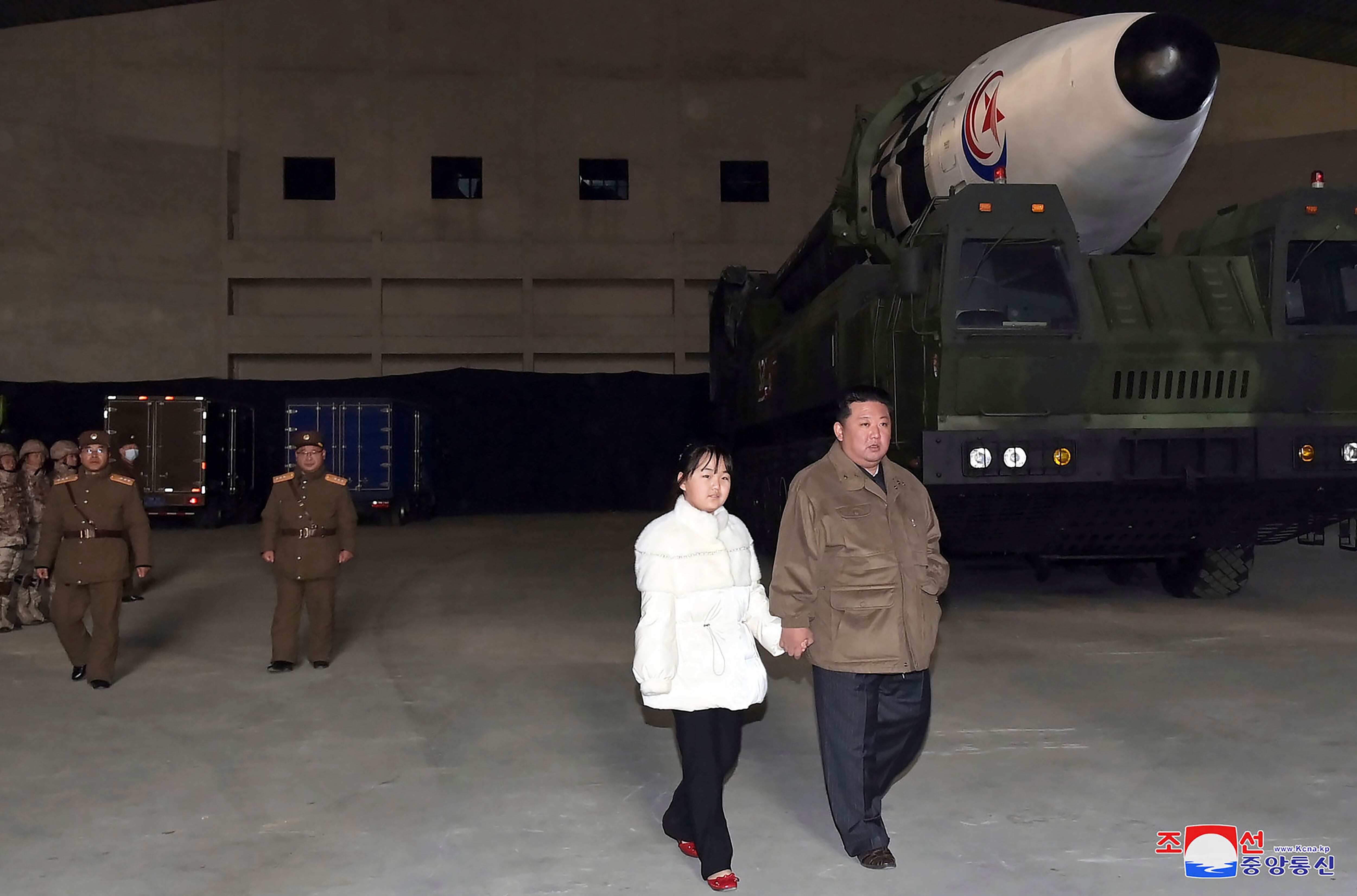 Corea del Norte dijo el sábado que Kim había presenciado el lanzamiento el día anterior del misil balístico intercontinental más potente del país, el Hwasong-17, con su esposa, Ri Sol Ju, y su “amada hija”. Medios estatales mostraron imágenes de Kim caminando junto a un enorme misil colocado en un vehículo de lanzamiento, de la mano de una niña con abrigo blanco y zapatos rojos, y mirando el despegue del arma desde lejos.