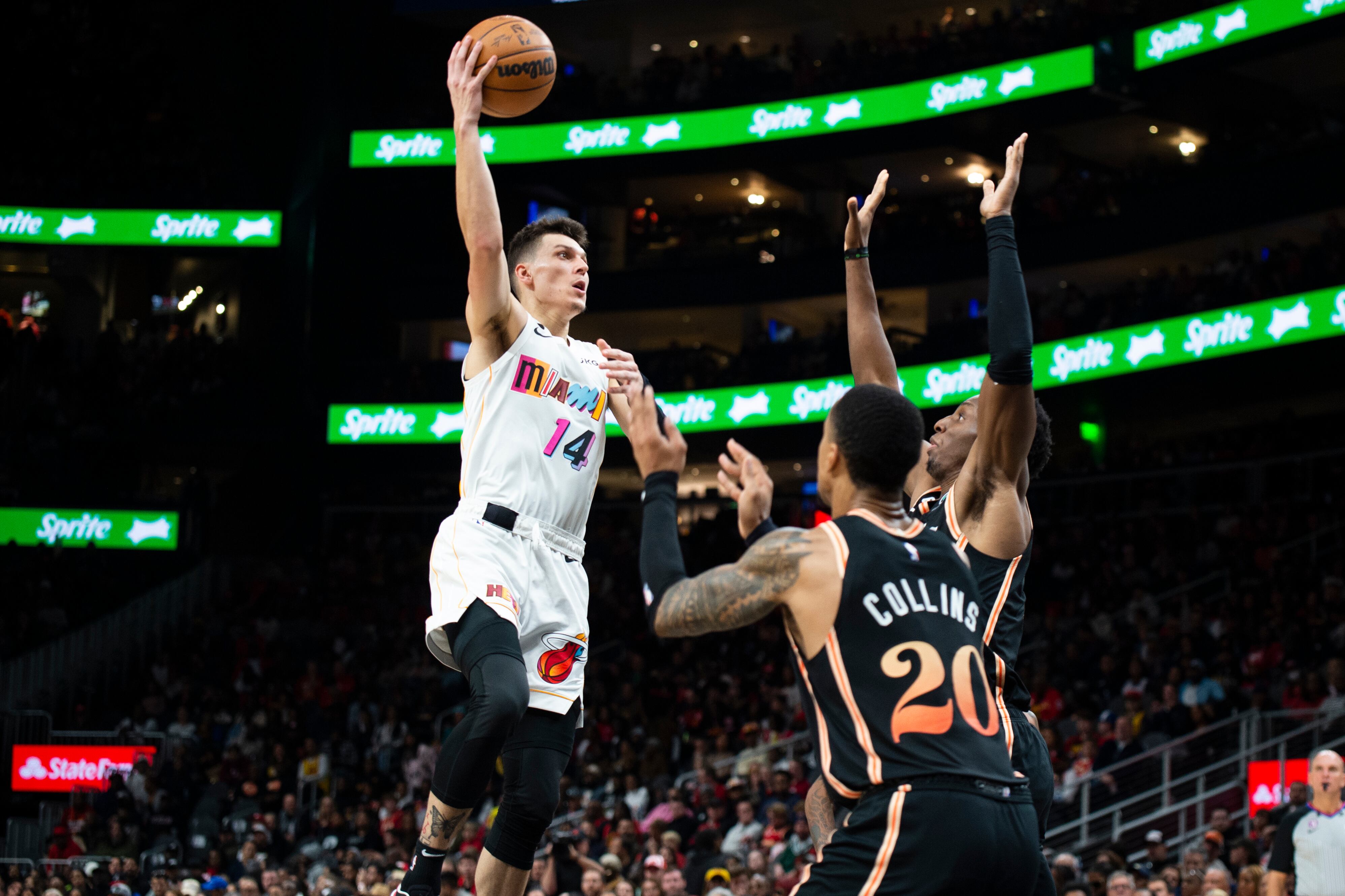 Tyler Herro sumó 11 tantos, 10 asistencias y 11 rebotes, mientras que Max Strus firmó 16 puntos por el Heat, que superó 34-21 a Atlanta en el tercer periodo para tomar las riendas del juego.
