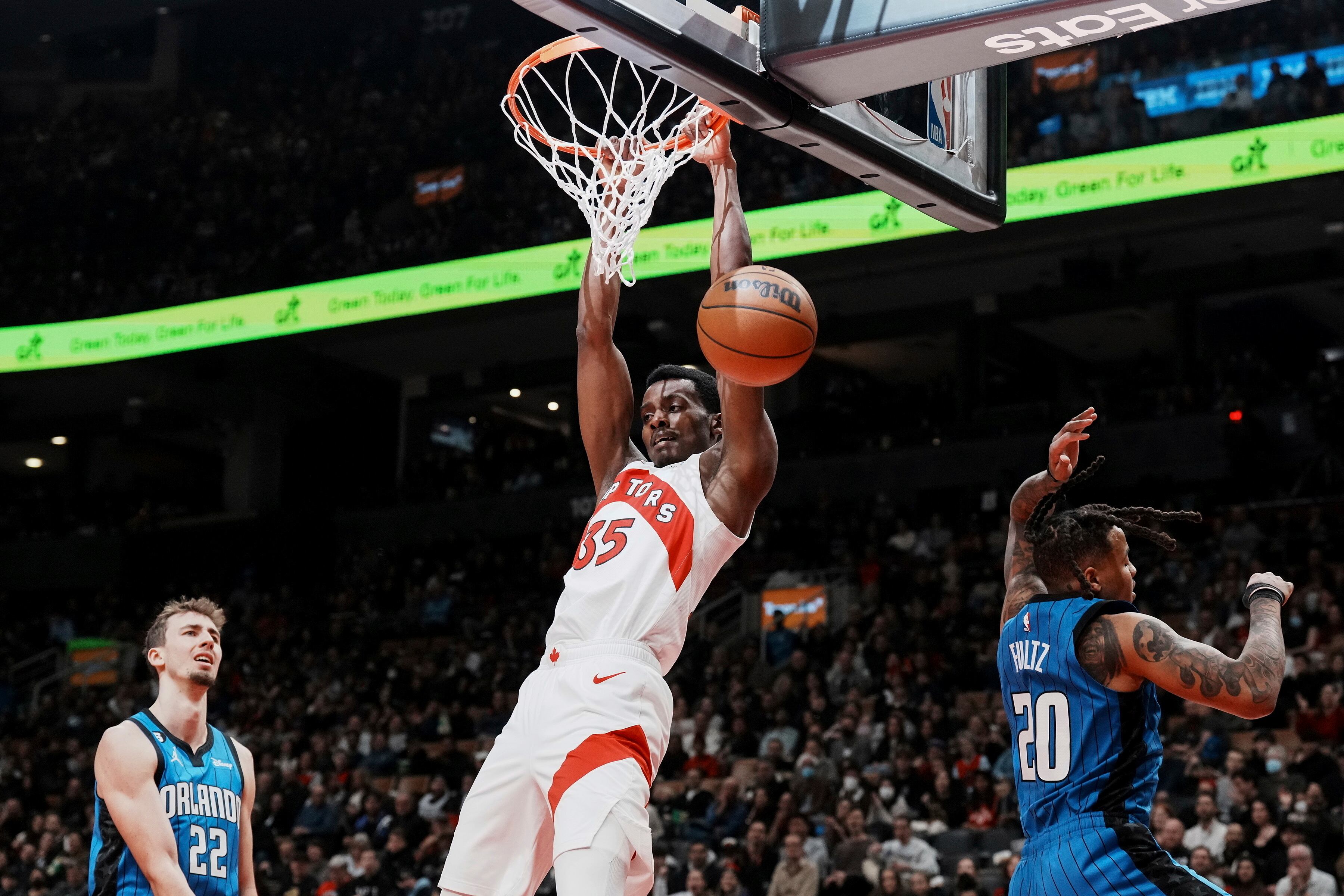 Toronto clavó el balón cinco veces en el primer periodo y 26 puntos en la pintura para irse arriba 36-22.