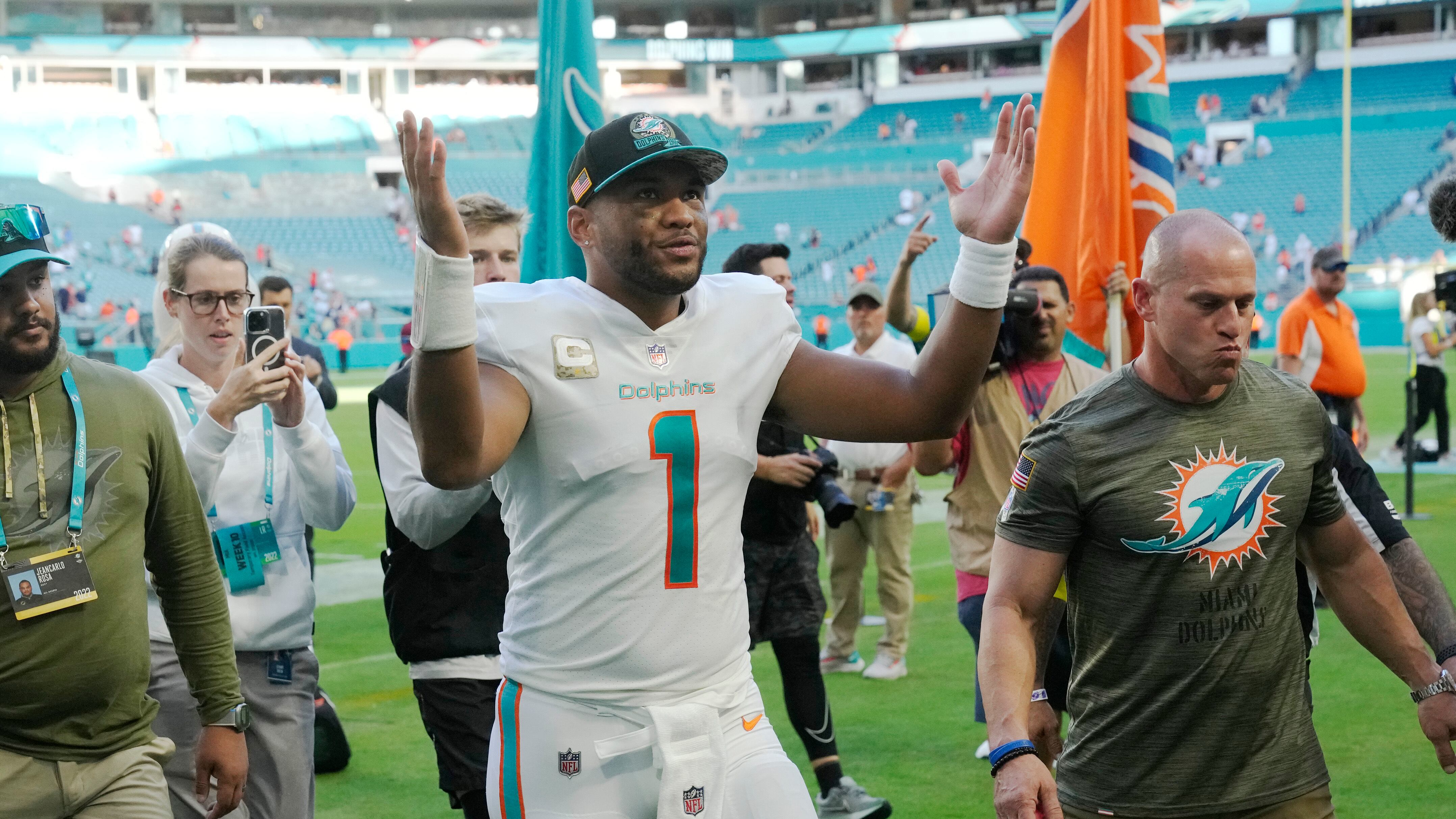 Con cinco partidos por jugar, Tagovailoa ha lanzado para más yardas y touchdowns que sus dos temporadas previas en la NFL y ha llevado a Miami a un récord de 8-4, un juego detrás del líder del Este de la AFC, los Bills de Buffalo.
