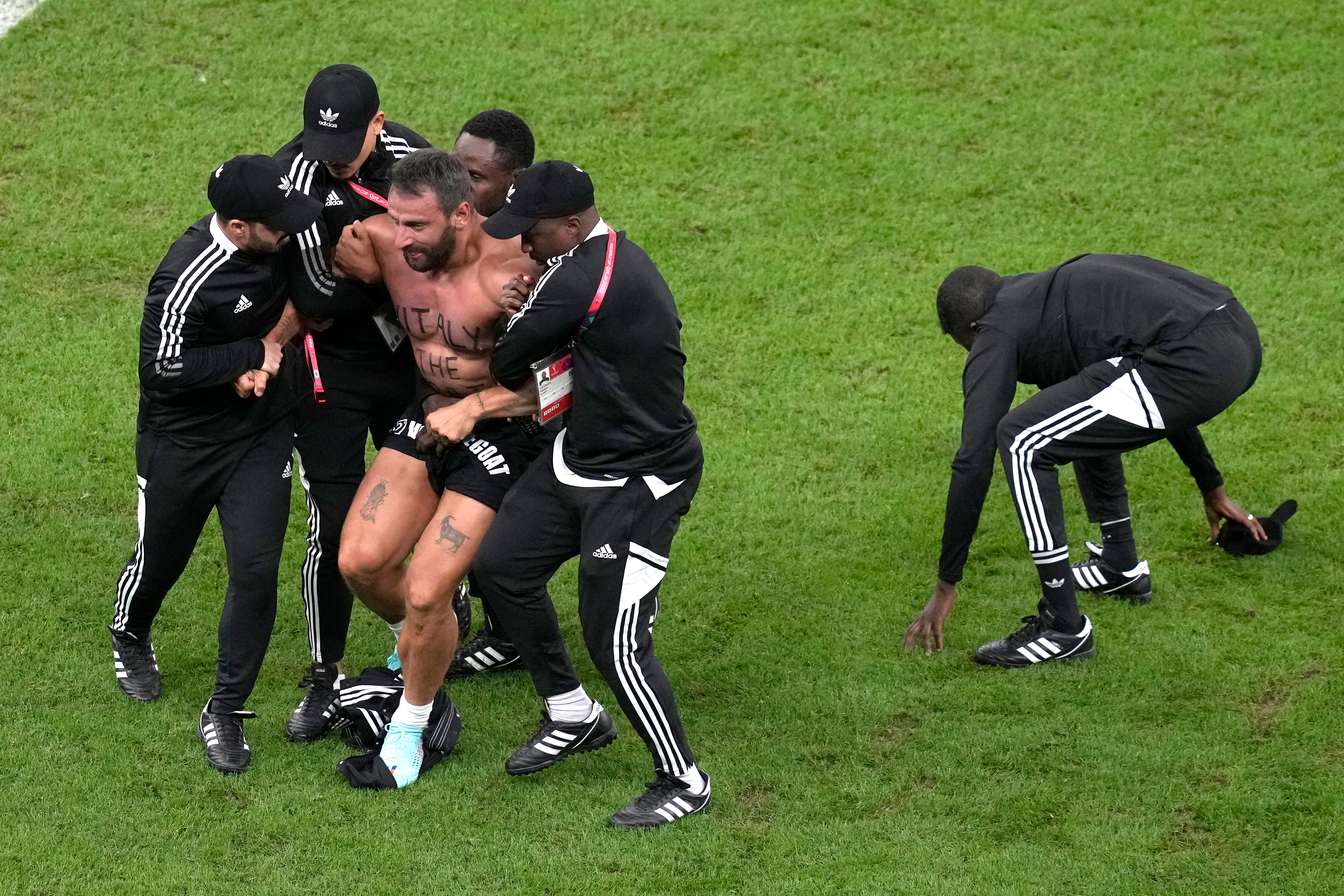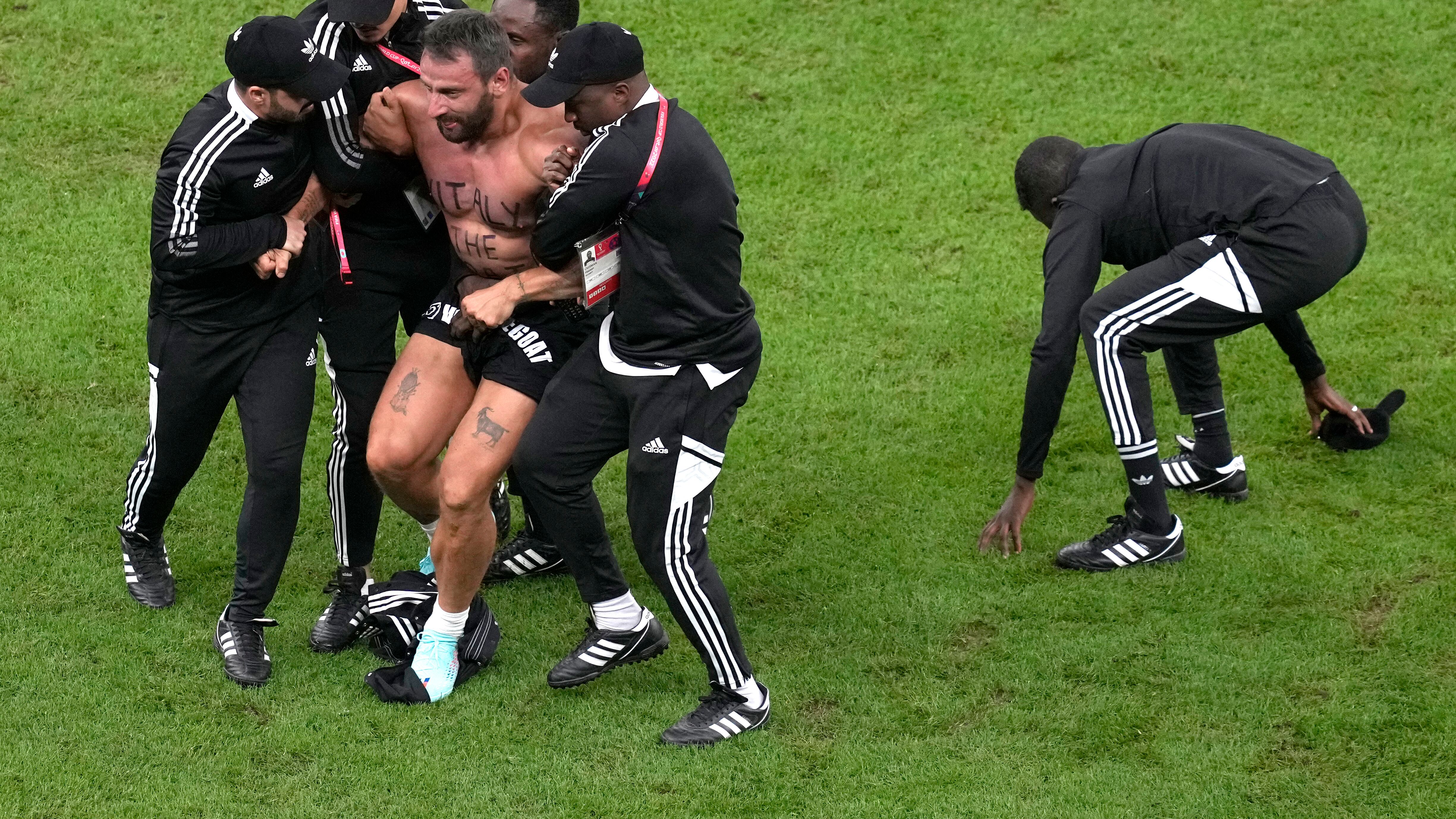LUSAIL, Qatar (AP) — Un aficionado ingresó corriendo a la cancha a los 75 minutos del partido entre Argentina y Holanda en los cuartos de final de la Copa del Mundo el viernes, justo después que Lionel Messi convirtió un tiro penal para dar una ventaja de 2-0 a los argentinos.