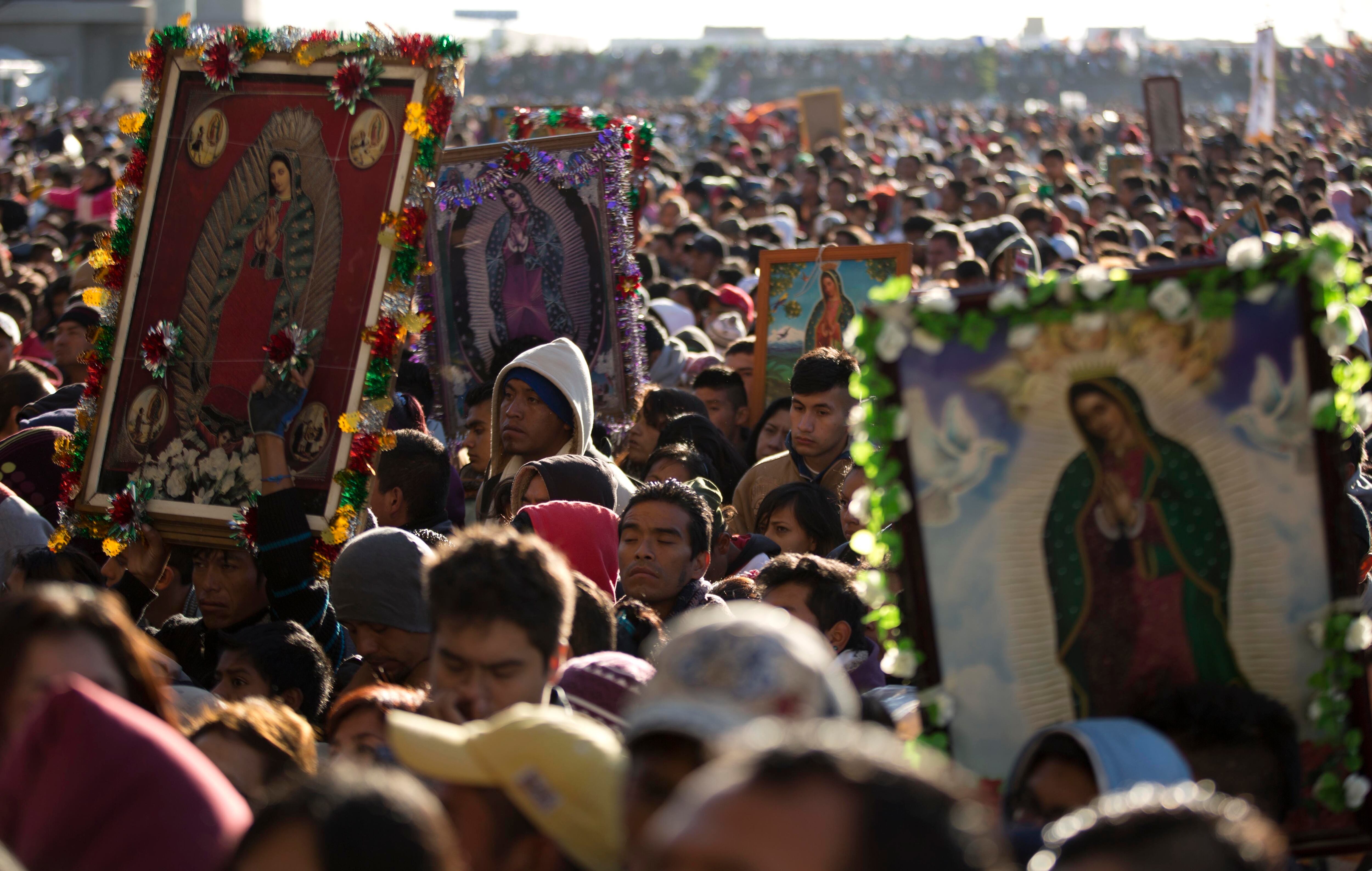 La fe en la Virgen de Guadalupe no choca con otras creencias. Es usual observar fieles que entran al santuario entonando canciones típicas de sus pueblos o vistiendo ropas autóctonas.