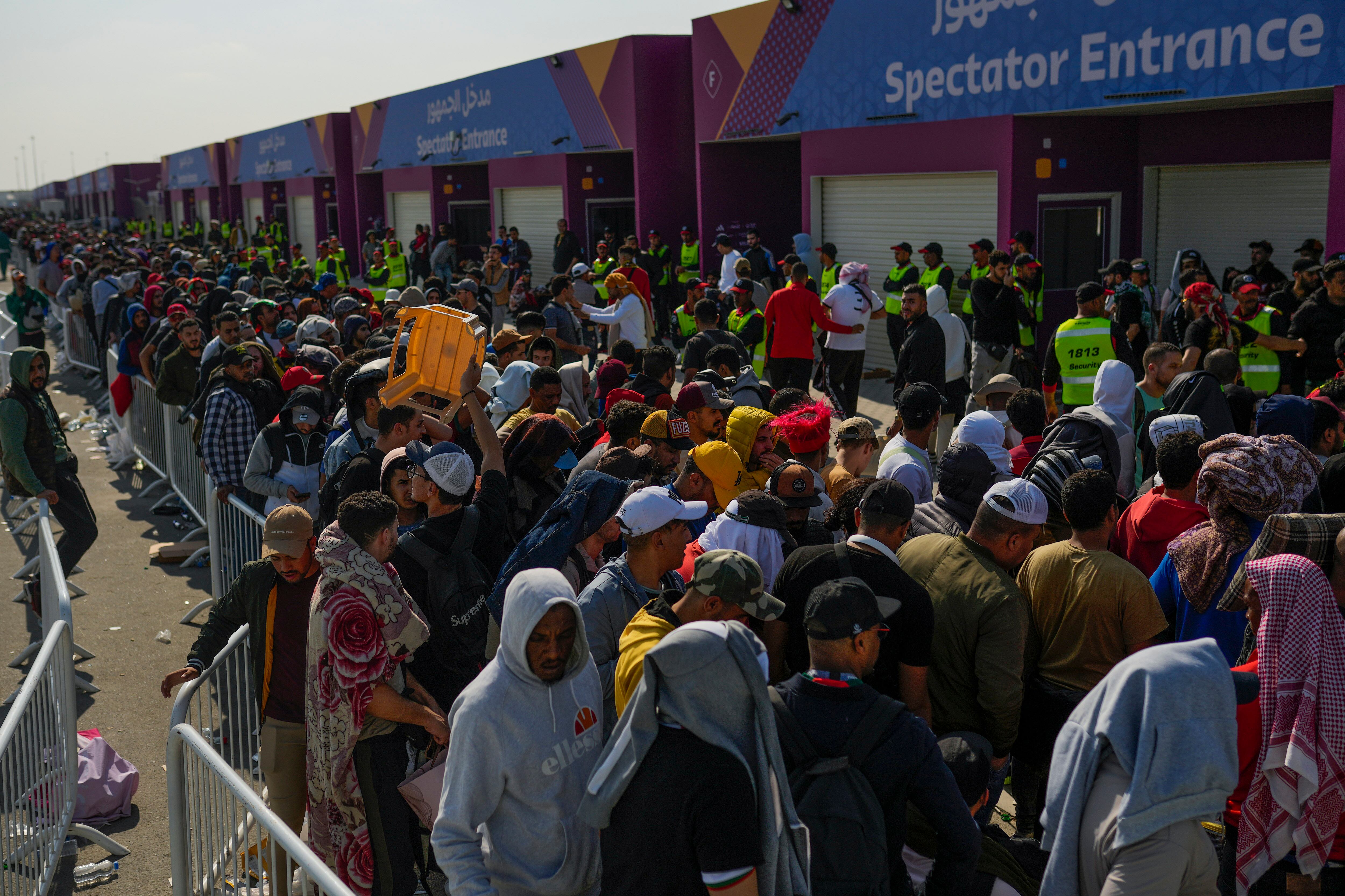 AL WAKRAH, Qatar (AP) — Cientos de hinchas de Marruecos hicieron cola el martes afuera del estadio Al Janoub con la esperanza de obtener una entrada gratis para la semifinal que su selección disputará el miércoles contra Francia en la Copa Mundial.