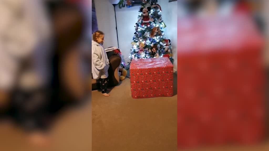 Paige, de siete años, bajó las escaleras el 5 de diciembre y se encontró con un enorme regalo, sin saber que su padre estaba escondido dentro. Entonces saltó dentro de la caja de pura emoción por ver a su padre por primera vez en meses. Sarah se emocionó tanto al grabar la sorpresa que decidió subir el vídeo a TikTok para compartir el emotivo momento.
