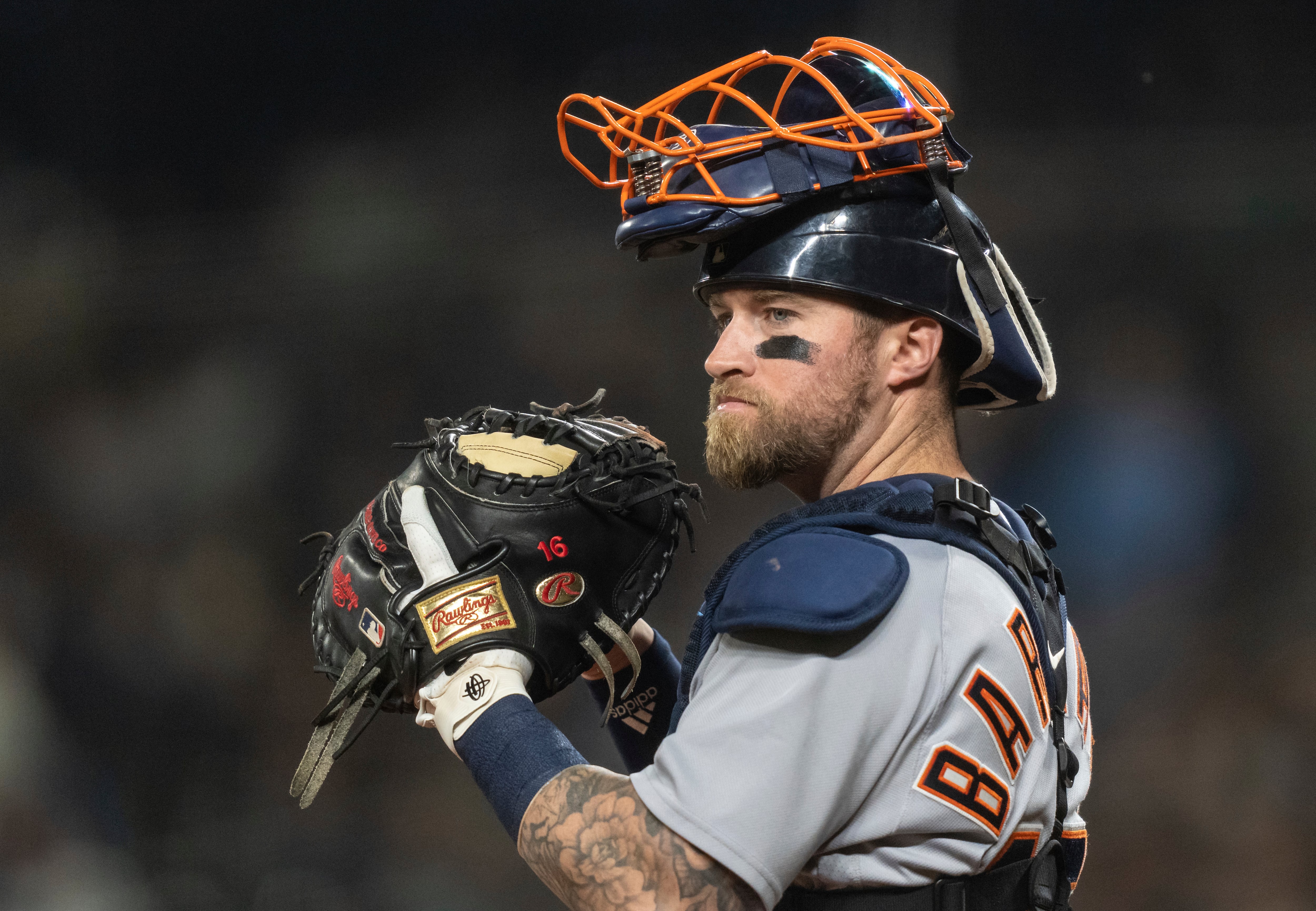 ARCHIVO - Foto del 4 de octubre del 2022, el cátcher de los Tigres de Detroit Tucker Barnhart en el segundo encuentro de una doble-cartelera ante los Marineros de Seattle. El jueves 29 de diciembre del 2022, Barnhart firma por dos años con los Cachorros AP (Stephen Brashear/AP)