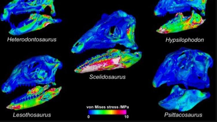 Científicos del Natural History Museum y las Universidades de Bristol y Birmingham, usaron tomografías computarizadas de cráneos de dinosaurios para rastrear la evolución de los primeros dinosaurios herbívoros, reconstruyendo los músculos de la mandíbula y midiendo la fuerza de mordida de los animales para comprender cómo evolucionó la alimentación de los dinosaurios.