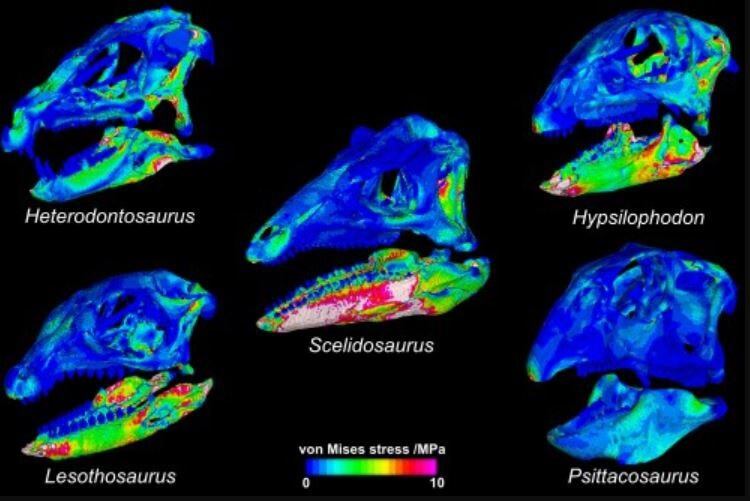 Cinco cráneos del grupo herbívoro Ornithischia proporcionaron la clave para desbloquear sus hábitos alimenticios: Heterodontosaurus, Lesothosaurus, Scelidosaurus, Hypsilophodon y Psittacosaurus, los primeros representantes de lo que se convertiría en los principales grupos de dinosaurios herbívoros.