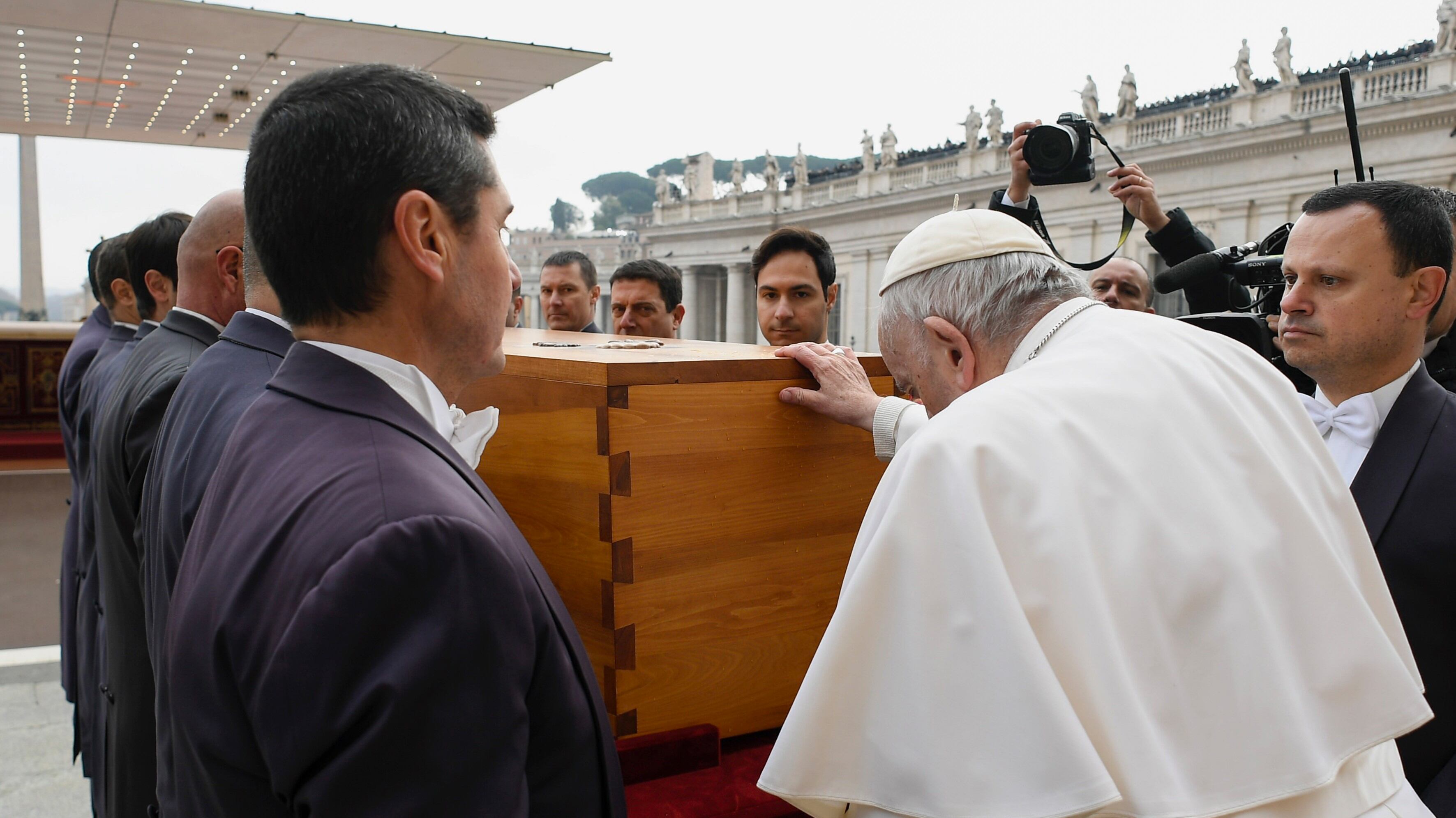 No es la primera vez que un papa participa en el funeral de otro; en 1802, Pío VII recibió los restos mortales de Pío VI, fallecido en el exilio en Francia en 1799 y asistió a la solemne misa funeral en San Pedro.