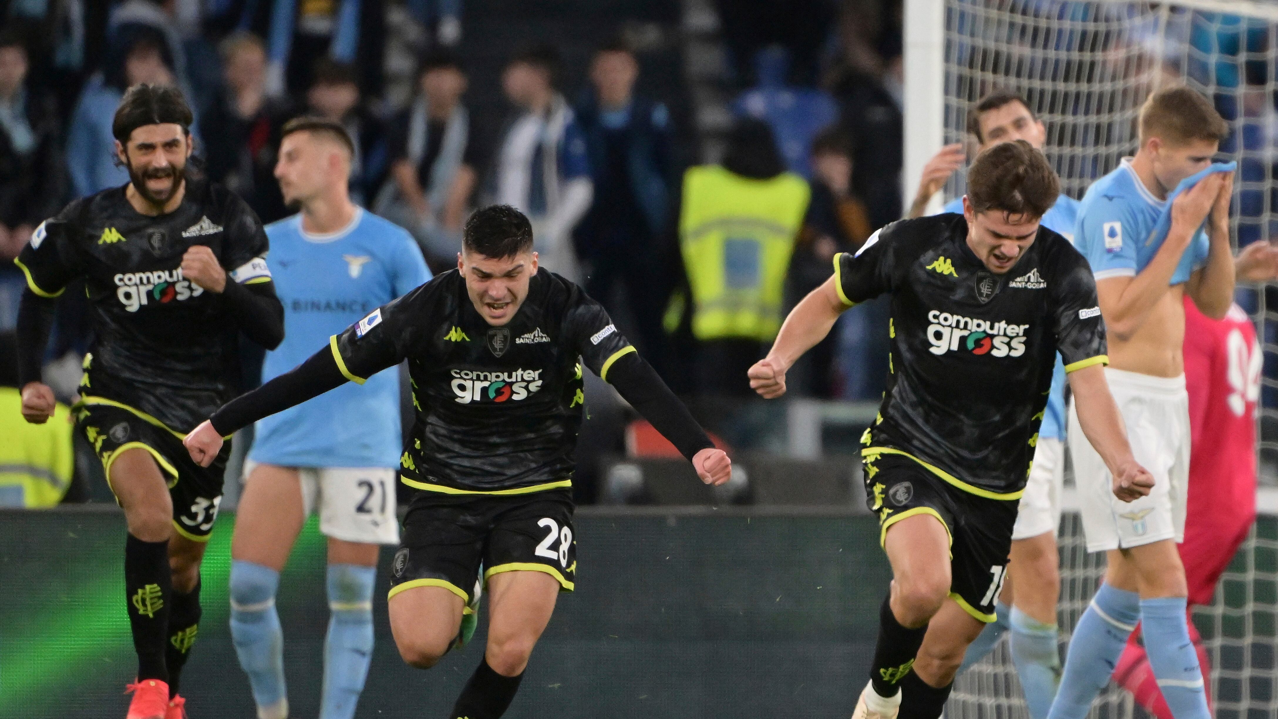 Empoli le frustró el festejo a la Lazio con dos tantos postreros para arrancar un empate 2-2 de la capital italiana.