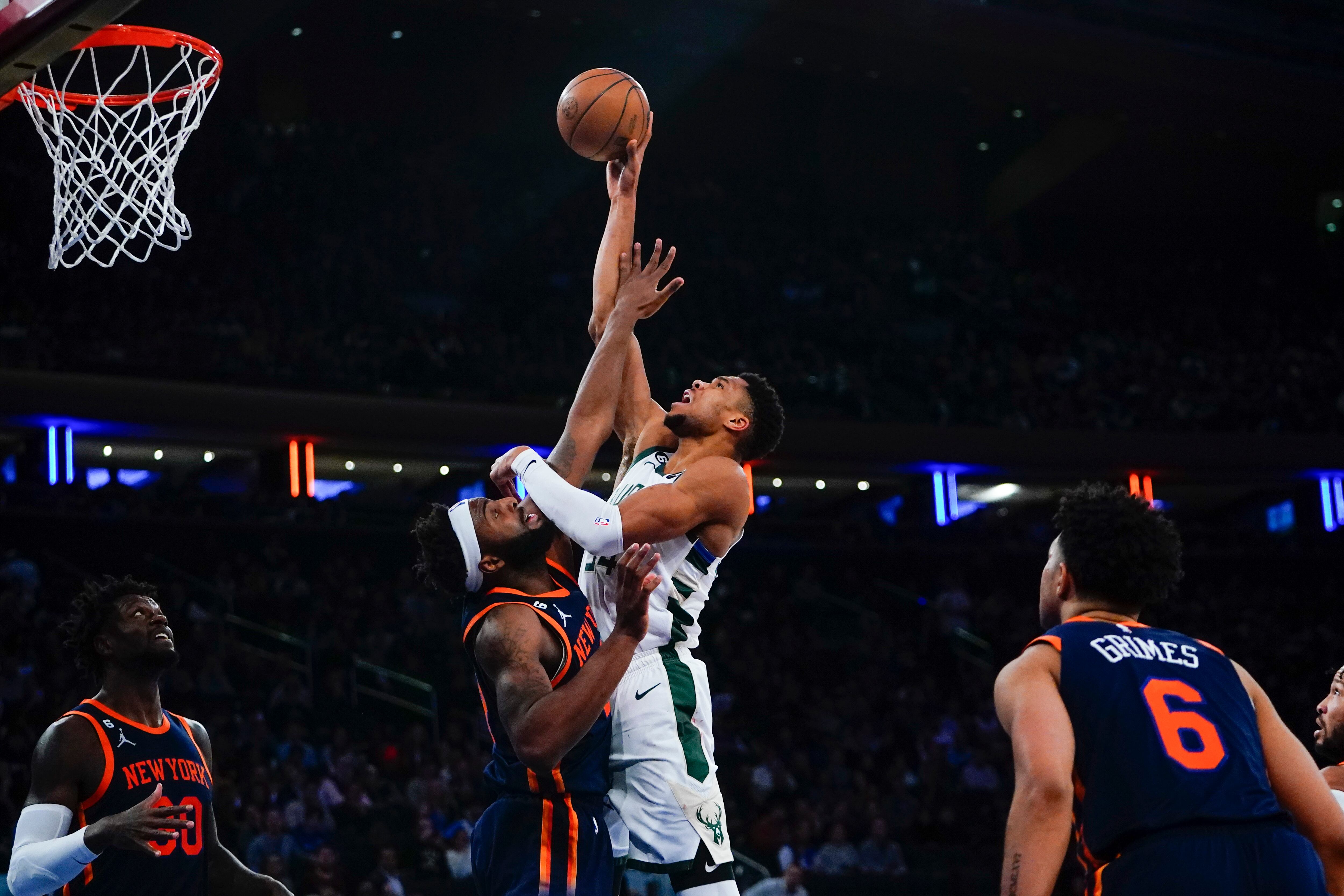 NUEVA YORK (AP) — Giannis Antetokounmpo tuvo 22 puntos y 10 rebotes y a base de triples los Bucks de Milwaukee borraron un déficit de 17 unidades en la segunda mitad para superar el lunes por 111-105 a los Knicks de Nueva York.
